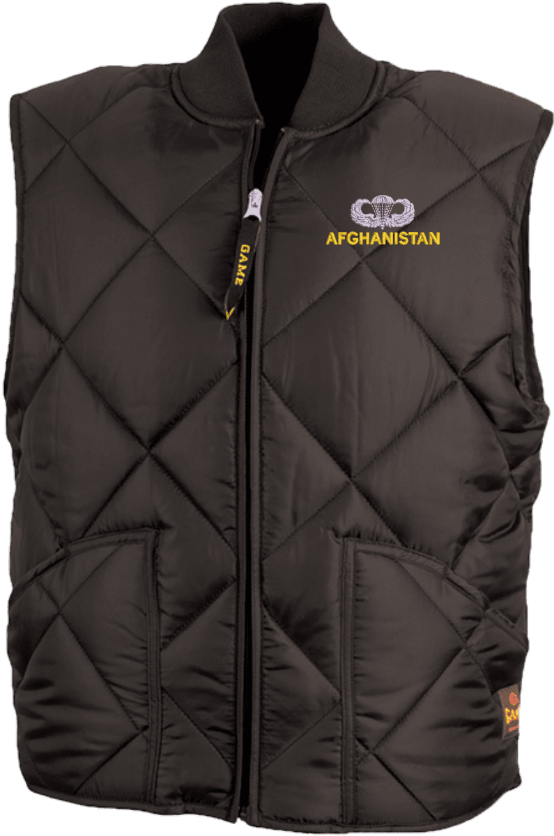 MilitaryBest has expanded its line of apparel with this custom embroidered U.S. Army Afghanistan Jump Wings Game Sportswear Finest Vest. This Game Sportswear U.S. Army Afghanistan Jump Wings Game Sportswear Finest Vest will make an excellent addition to your wardrobe or a quality gift. This U.S. Army Afghanistan Jump Wings Game Sportswear Finest Vest is custom embroidered at our facilities in Scottsboro, Alabama.The Finest Vest Features: