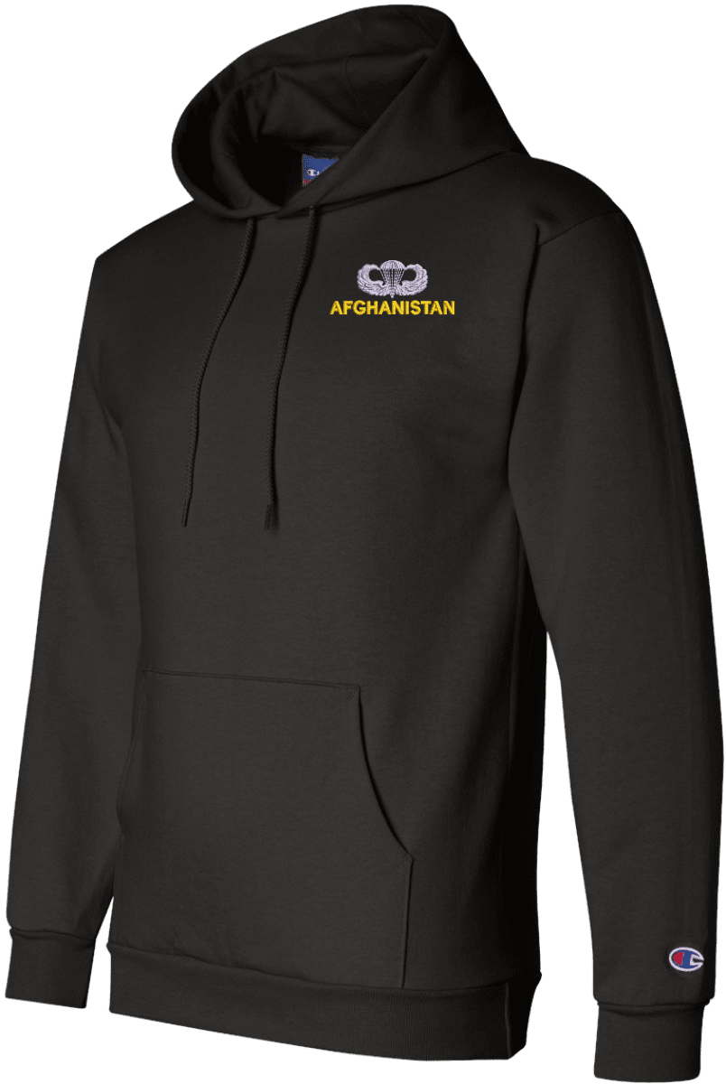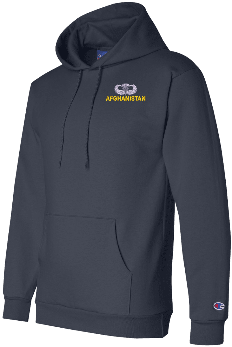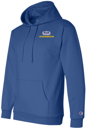 MilitaryBest has expanded its line of apparel with this custom embroidered U.S. Army Afghanistan Jump Wings Hoodie. Each Hoodie is direct embroidered onto a Champion brand 9.5 oz 50/50 Cotton Poly blend. This U.S. Army Afghanistan Jump Wings Hoodie will make an excellent addition to your wardrobe, or a great gift. Your satisfaction is Guaranteed! This U.S. Army Afghanistan Jump Wings Hoodie is custom embroidered at our facilities in Scottsboro, AL.