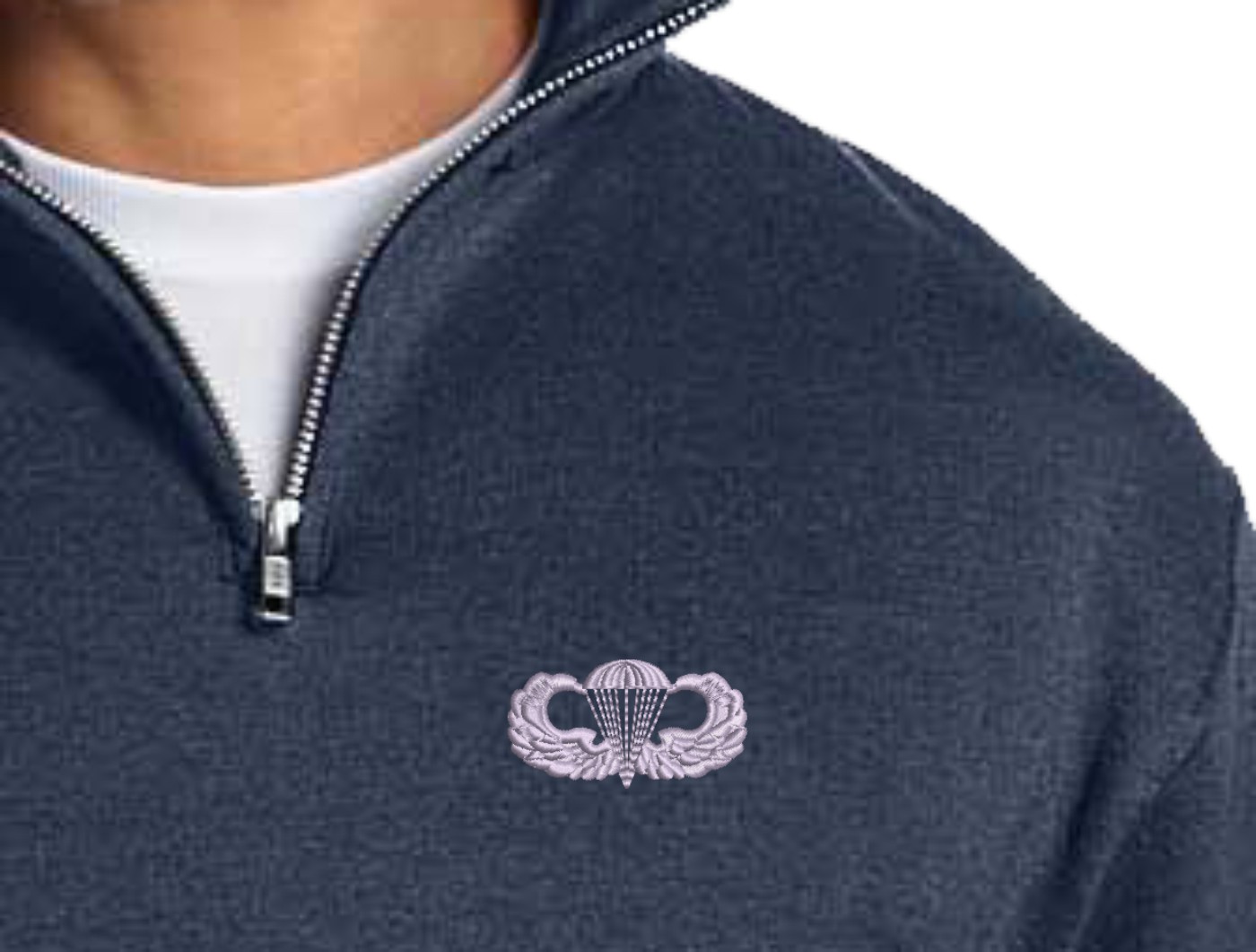 MilitaryBest is proud to offer this U.S. Army Jump Wings Embroidered Embroidered Quarter-Zip Pullover. This quality shirt is embroidered by our MilitaryBest team in Northeast Alabama.PRODUCT FEATURES