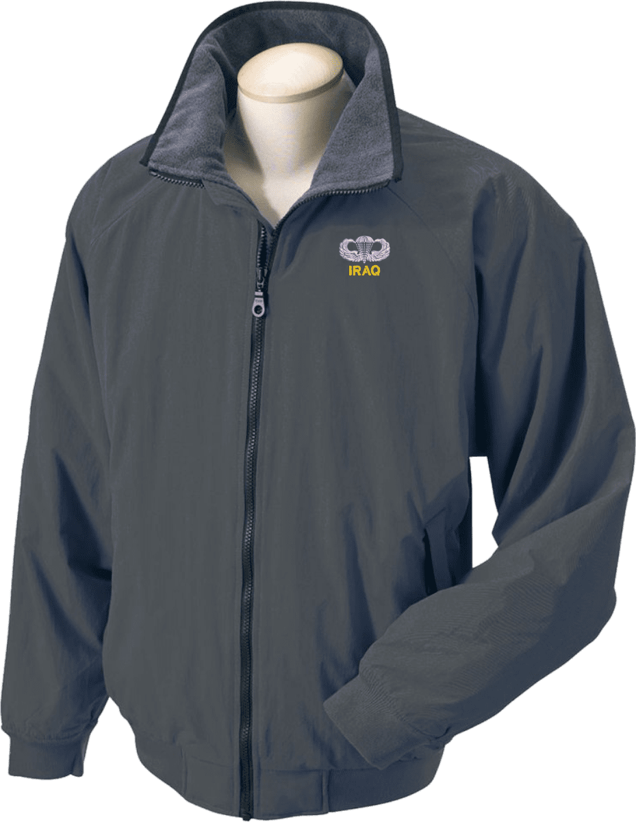 Note: Some of the Color Options pictured may not be available. Available Color Options are listed on the drop down menu above.MilitaryBest is expanding its line of Men's and Women's apparel with this quality U.S. Army Iraq Jump Wings 3 Season Jacket. This U.S. Army Iraq Jump Wings 3 Season Jacket is made from a 3-Layer system consisting of a nylon shell, an insulator layer, Nylon-lined sleeves, and an inside layer of fleece for comfort. The jacket features include a sturdy black enamel front-zipper, raglan sleeves, outsize zip pockets, an inside zip security pocket, YKK zippers, and a banded-bottom. This U.S. Army Iraq Jump Wings 3 Season Jacket will make an excellent addition to your wardrobe, or a quality gift. Your satisfaction is guaranteed! Depending on your location this jacket can be worn in fall, winter, and spring. This jacket is custom embroidered at our facilities in Scottsboro, AL.