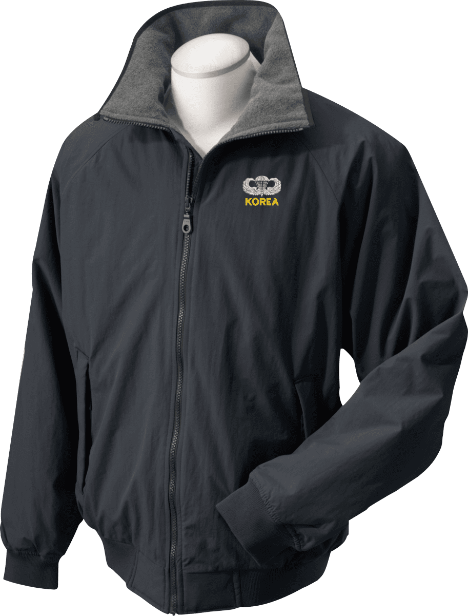 Note: Some of the Color Options pictured may not be available. Available Color Options are listed on the drop down menu above.MilitaryBest is expanding its line of Men's and Women's apparel with this quality U.S. Army Korea Jump Wings 3 Season Jacket. This U.S. Army Korea Jump Wings 3 Season Jacket is made from a 3-Layer system consisting of a nylon shell, an insulator layer, Nylon-lined sleeves, and an inside layer of fleece for comfort. The jacket features include a sturdy black enamel front-zipper, raglan sleeves, outsize zip pockets, an inside zip security pocket, YKK zippers, and a banded-bottom. This U.S. Army Korea Jump Wings 3 Season Jacket will make an excellent addition to your wardrobe, or a quality gift. Your satisfaction is guaranteed! Depending on your location this jacket can be worn in fall, winter, and spring. This jacket is custom embroidered at our facilities in Scottsboro, AL.