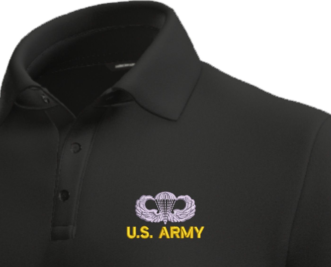 MilitaryBest has expanded its line of apparel with this custom embroidered U.S. Army Jump Wings Moisture Wicking Polo. This Polo is made using 50/50 cotton/polyester moisture wicking material. This U.S. Army Jump Wings Moisture Wicking Polo will make an excellent addition to your wardrobe, or a great gift. Your satisfaction is guaranteed! Each U.S. Army Jump Wings Moisture Wicking Polo is directly embroidered at our facilities in Scottsboro, AL.