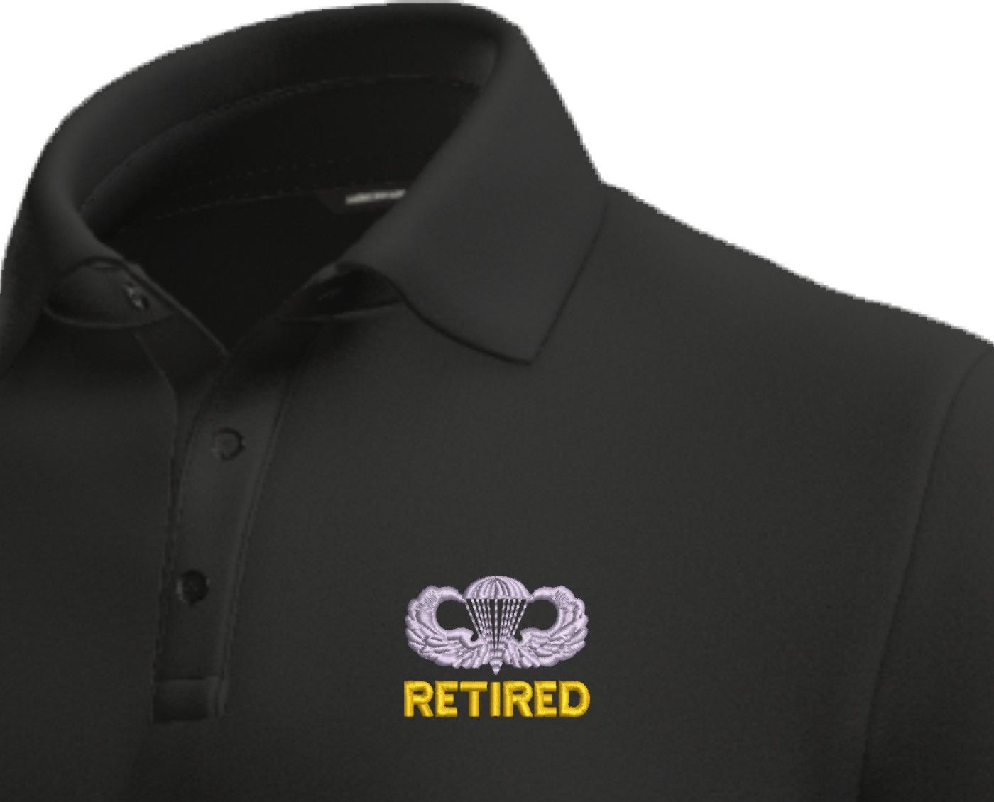 MilitaryBest has expanded its line of apparel with this custom embroidered U.S. Army Retired Jump Wings Moisture Wicking Polo. This Polo is made using 50/50 cotton/polyester moisture wicking material. This U.S. Army Retired Jump Wings Moisture Wicking Polo will make an excellent addition to your wardrobe, or a great gift. Your satisfaction is guaranteed! Each U.S. Army Retired Jump Wings Moisture Wicking Polo is directly embroidered at our facilities in Scottsboro, AL.