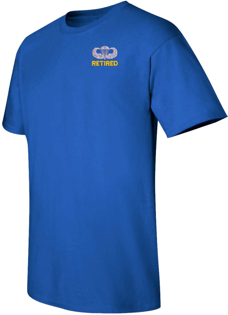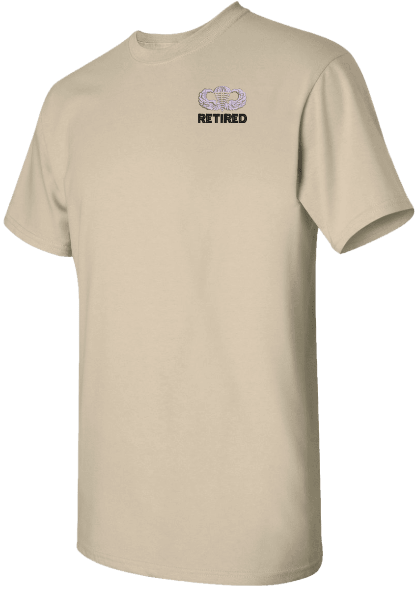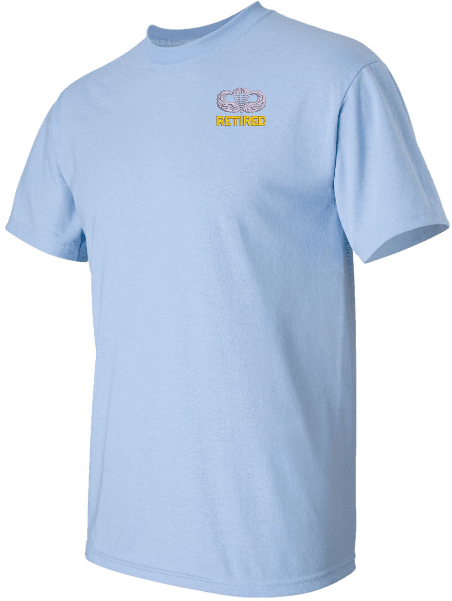 Note: Some of the Color Options pictured may not be available. Available Color Options are listed on the drop down menu above.MilitaryBest is expanding its line of apparel with this fine U.S. Army Retired Jump Wings T-Shirt. This Gildan brand short sleeve t-shirt is made using a 6 oz pre-shrunk 100% cotton material. This U.S. Army Retired Jump Wings T-Shirt will make an excellent addition to your wardrobe or a fine gift. This U.S. Army Retired Jump Wings T-Shirt is custom embroidered at our facilities in Scottsboro, AL when you place your order.