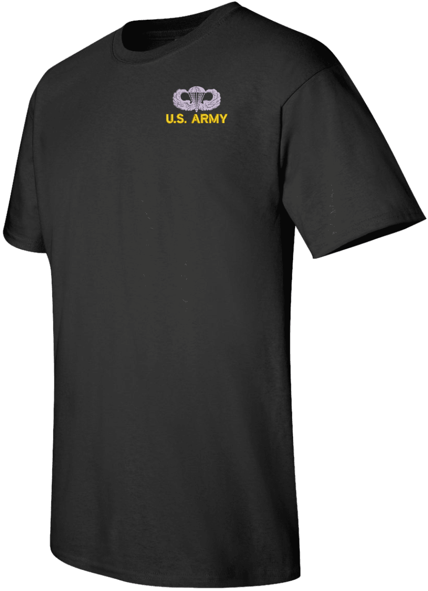 Note: Some of the Color Options pictured may not be available. Available Color Options are listed on the drop down menu above.MilitaryBest is expanding its line of apparel with this fine U.S. Army Jump Wings T-Shirt. This Gildan brand short sleeve t-shirt is made using a 6 oz pre-shrunk 100% cotton material. This U.S. Army Jump Wings T-Shirt will make an excellent addition to your wardrobe or a fine gift. This U.S. Army Jump Wings T-Shirt is custom embroidered at our facilities in Scottsboro, AL when you place your order.
