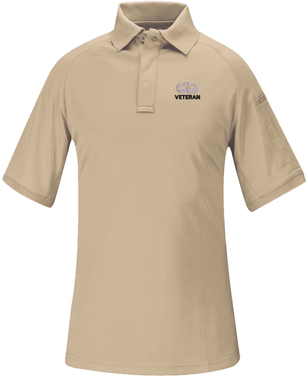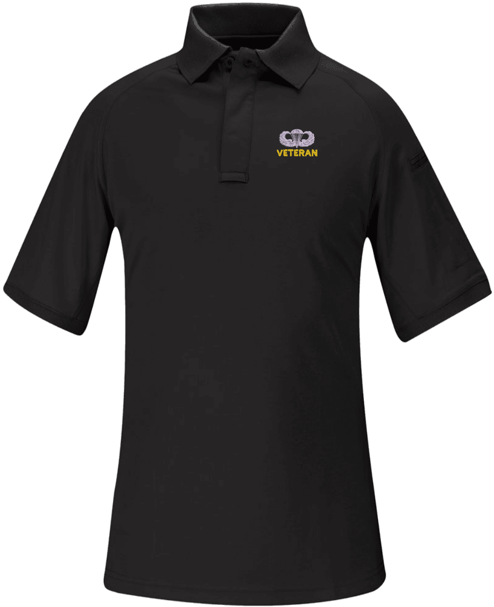 Note: Some of the Color Options pictured may not be available. Available Color Options are listed on the drop down menu above.MilitaryBest has expanded its line of apparel with this custom embroidered U.S. Army Veteran Jump Wings Propper Snag Free Polo. Each polo is made using a Propper Snag Free 100% polyester moisture wicking material. This U.S. Army Veteran Jump Wings Propper Snag Free Polo will make an excellent addition to your wardrobe, or a great gift. Your satisfaction is guaranteed! Each U.S. Army Veteran Jump Wings Propper Snag Free Polo is directly embroidered at our facilities in Scottsboro, AL.