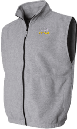 Due to supply chain disruptions, some colors and sizes may not be available in the same Brand, in these cases a brand of comparable quality will be used. Feel free to call in advance of your order, with questions you may have.MilitaryBest is expanding its line of Men's apparel with this quality U.S. Army Vietnam Jump Wings Full-Zip Fleece Vest. This U.S. Army Vietnam Jump Wings Full-Zip Fleece Vest features a convertible collar with dyed-to-match zipper pull, oversized nylon reinforced slash pockets, and an elastic hem. It is made using a 100% anti-pill polyester Fleece Vest. This U.S. Army Vietnam Jump Wings Full-Zip Fleece Vest will make an excellent addition to your wardrobe, or a quality gift. Your satisfaction is guaranteed! These Vests are custom embroidered at our facilities in Scottsboro, AL.