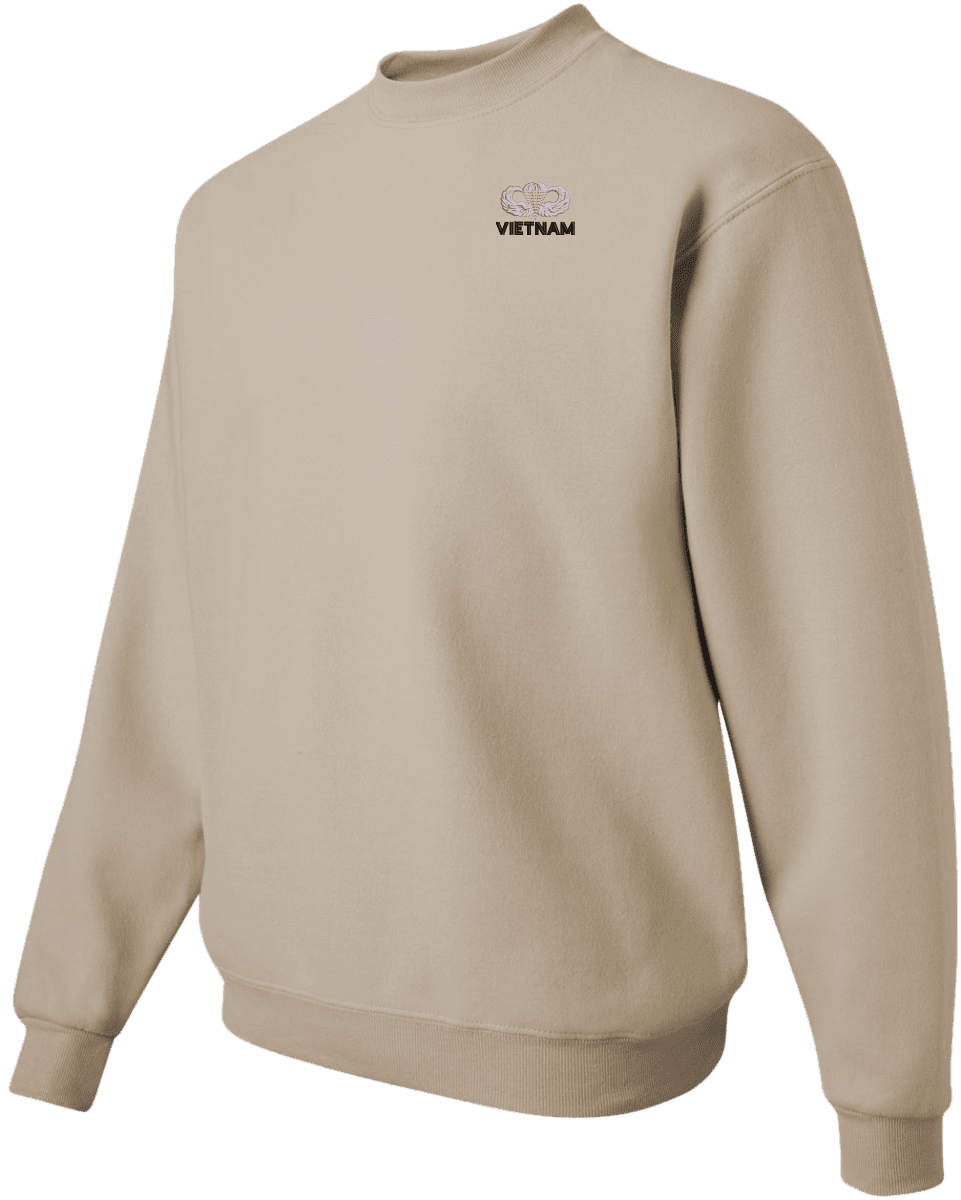 MilitaryBest has expanded its line of apparel with this custom embroidered U.S. Army Vietnam Jump Wings Sweatshirt. Each sweatshirt is direct embroidered onto either a Champion or Jerzees brand sweatshirt using a 9.5 oz 50/50 Cotton Poly blend material. This U.S. Army Vietnam Jump Wings Sweatshirt will make an excellent addition to your wardrobe, or a great gift. Your satisfaction is Guaranteed! This U.S. Army Vietnam Jump Wings Sweatshirt is custom embroidered at our facilities in Scottsboro, AL.