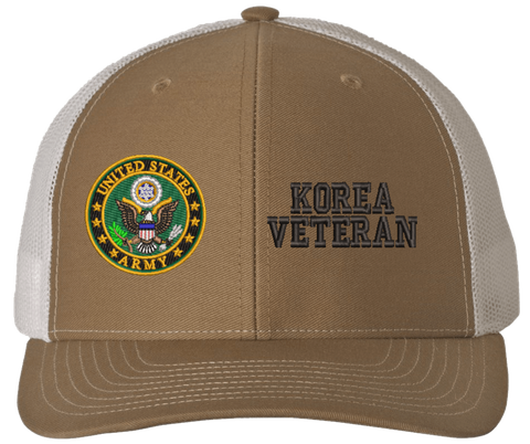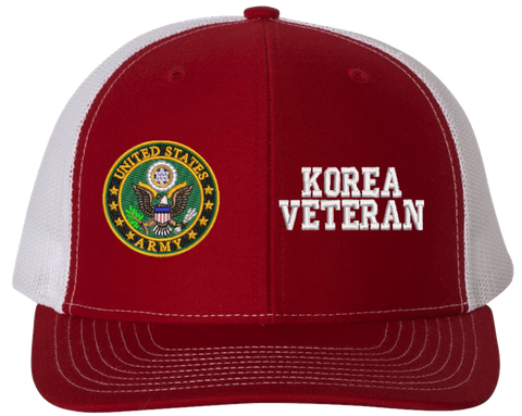 MilitaryBest is proud to offer this U.S. Army Korea Veteran Cap. The design of this U.S. Army Cap is crisp, clean, and sure to be loved by people of all ages! Select above from our many cap colors. This U.S. Army Korea Veteran Cap is crafted by our skilled embroidery technicians at our facilities in Scottsboro, AL. As with all MilitaryBest items, your satisfaction is guaranteed!Caps ordered with custom embroidered personalized back text require an additional 2 to 3 days production time. All custom back text will be embroidered in ALL CAPITAL LETTERS. Caps personalized with back text are non-returnable unless there is a material defect in the cap.