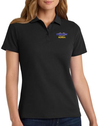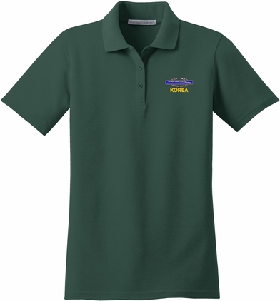MilitaryBest is proud to offer this U.S. Army Korea with Combat Infantry Badge Women's Stain-Release Polo. This polo is embroidered by our MilitaryBest team in Northeast Alabama. These polos are made with a stain-release finish for long-lasting wear, odor-fighting properties, and superior wrinkle and shrink resistance.Care Instructions: Machine Wash Cold With Like Colors. Do Not Use Fabric Softener. Do Not Bleach. Tumble Dry Low. Warm Iron If Necessary.