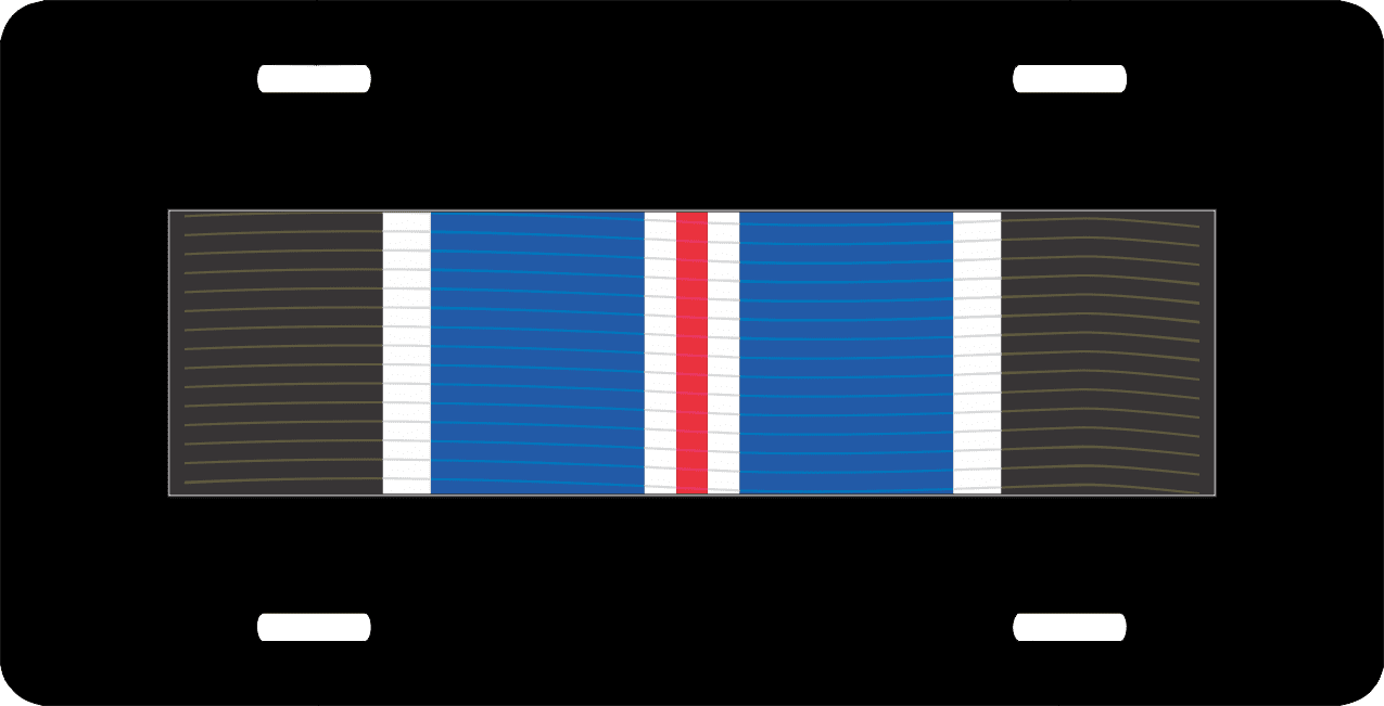 This U.S. Army Medal For Humane Action Ribbon License Plate is made from heavy gauge aluminum and has a baked enamel finish to last for many years of use. Each plate measures 5 15/16" x 11 15/16". This license plate would make a wonderful addition to your collection or a great gift.