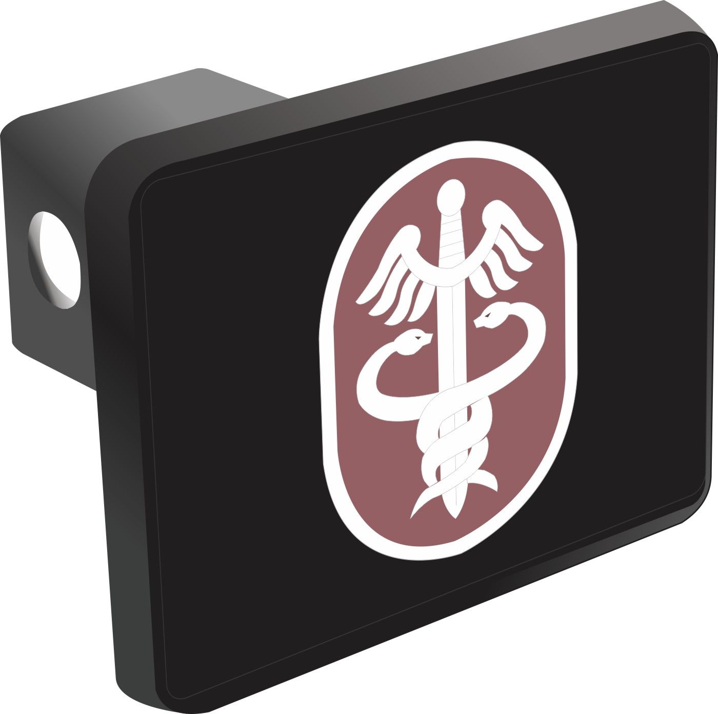 This U.S. Army Medical Command Patch Hitch Cover is proudly Made in the USA. Each Hitch Cover's face plate measures 4.7" x 3.4" and is applied on a black heavy duty injection molded plastic 2" hitch cover; link pin not included. The face plate of the hitch cover is sublimation printed to provide a beautiful glossy finish sure to catch the eye. This hitch cover would make a wonderful addition to your truck or other vehicle.A percentage of the sale of each MilitaryBest item is forwarded to the licensing departments of each respective branch of service in support of the MWR (Morale, Welfare, & Recreation) program. These payments are made by either ALL4U LLC or the wholesaler from where the item originated. Our team thanks you for your service and your support of these programs.