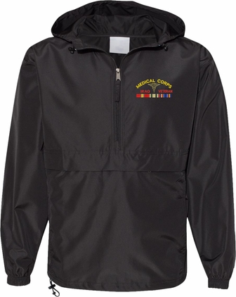MilitaryBest is proud to offer this quality U.S. Army Medical Corps Iraq Veteran Hooded Windbreaker. Also known as an Anorak Jacket, this windbreaker is designed to keep wind and water out. With a design embroidered over the left chest, this windbreaker is embroidered to order at our facilities in Scottsboro, AL.. This windbreaker can be packed into the mesh lined pouch pocket for a more portable method of storage.- 100% Polyester