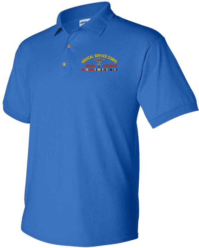 MilitaryBest is proud to offer this quality U.S. Army Medical Service Corps Iraq Veteran Polo. Each Polo is available in either 100% Ringspun cotton pique or a 50/50 cotton/polyester blend. These quality Military Polos are proudly embroidered at our facilities in Scottsboro, AL. Support the Army MWR program by purchasing only from Licensed Vendors.