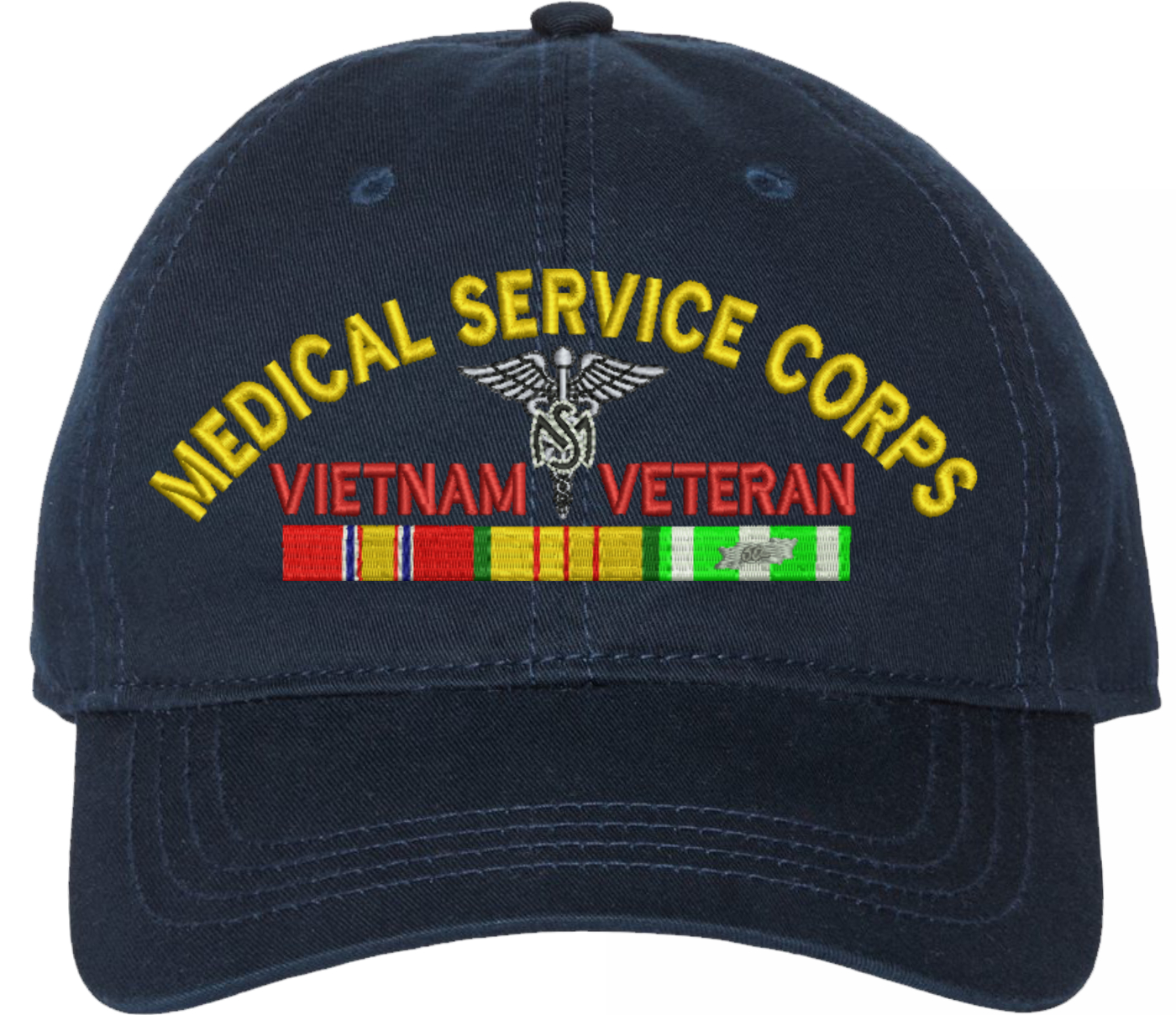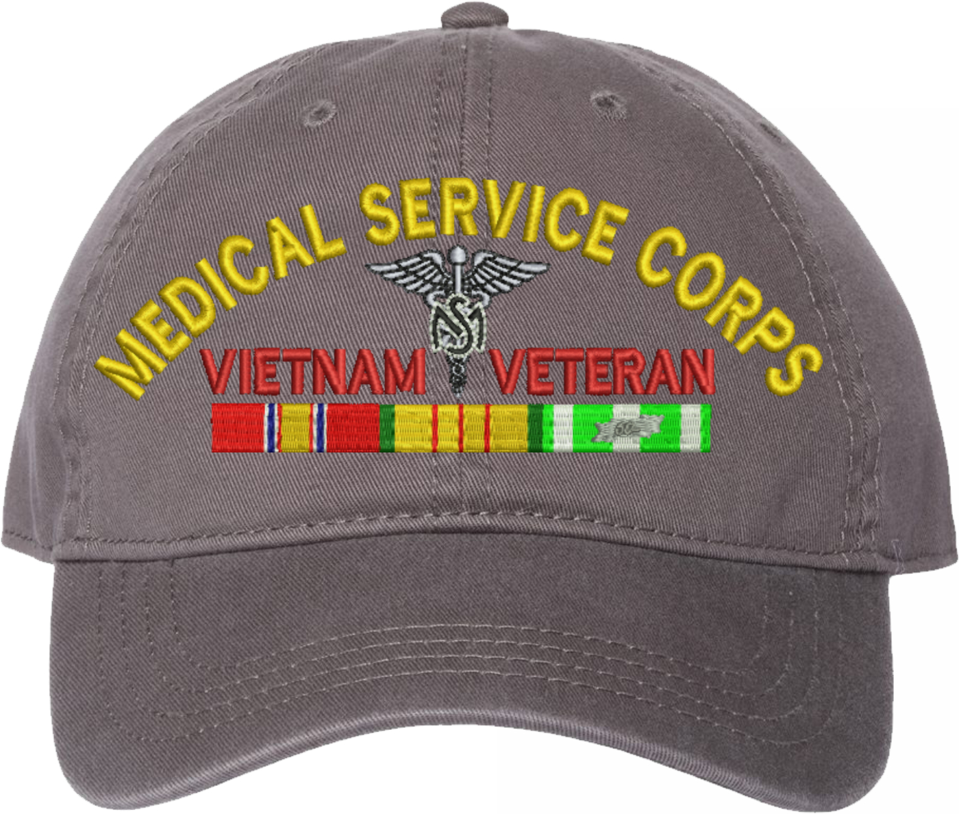 Show your Army pride with this U.S. Army Medical Service Corps Vietnam Veteran Unstructured Dad Cap from MilitaryBest. Crafted from 100% washed chino twill cotton, this six-panel, low-profile cap offers a relaxed and comfortable fit. Featuring high-quality embroidery done in our Scottsboro, Alabama facility, this cap is designed with a pre-curved visor and an adjustable tri-glide buckle closure for a perfect fit. Whether for everyday wear or as a meaningful gift, this cap is a great way to honor your own or a loved one's service.For caps ordered with custom embroidered personalized text please allow an additional 3 to 5 days production time. All custom back text will be embroidered in ALL CAPITAL LETTERS. Caps with back text or eggs are non-returnable unless there is a material defect in the cap.