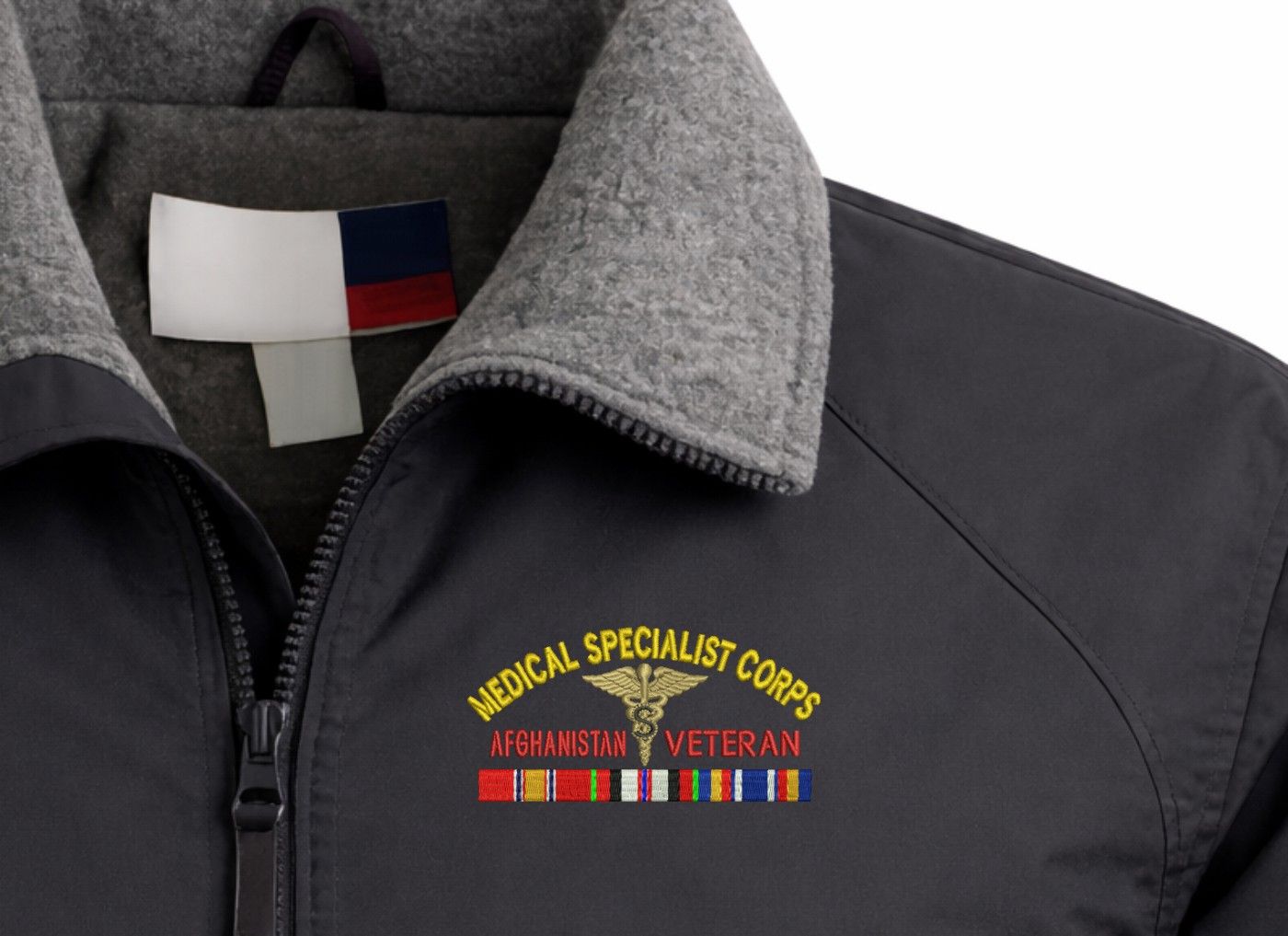 Note: Some of the Color Options pictured may not be available. Available Color Options are listed on the drop down menu above.MilitaryBest is proud to offer this quality U.S. Army Medical Specialist Corps Afghanistan Veteran 3-Season Jacket. This 3-Season Jacket is made from a 3-Layer system consisting of a nylon shell, an insulator layer, Nylon-lined sleeves, and an inside layer of fleece for comfort. The jacket features include a sturdy black enamel front-zipper, raglan sleeves, outsize zip pockets, an inside zip security pocket, YKK zippers, and a banded-bottom. This Jacket will make an excellent addition to your wardrobe, or a quality gift. Your satisfaction is guaranteed! Depending on your location this jacket can be worn in fall, winter, and spring. These quality Military Jackets are proudly embroidered at our facilities in Scottsboro, AL. Support the Army MWR program by purchasing only from Licensed Vendors.