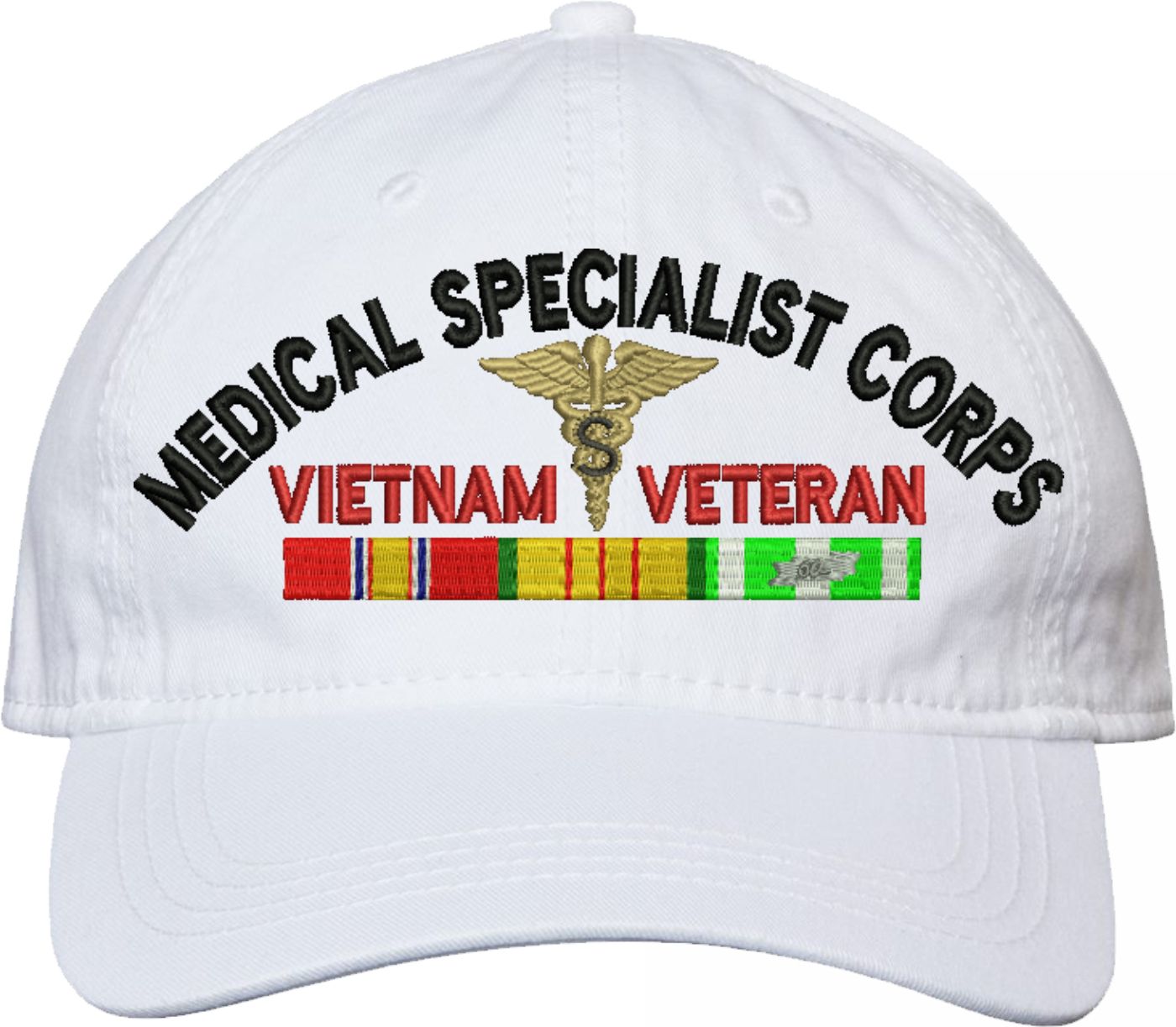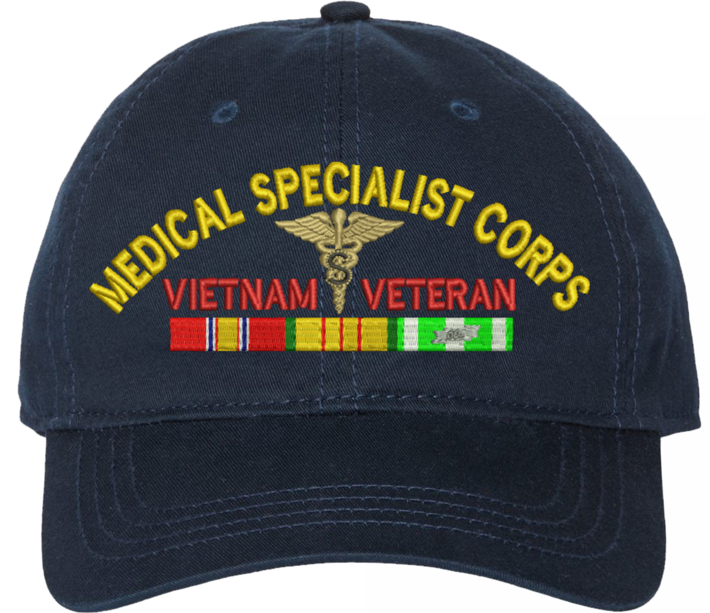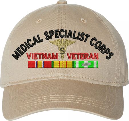 Show your Army pride with this U.S. Army Medical Specialist Corps Vietnam Veteran Unstructured Dad Cap from MilitaryBest. Crafted from 100% washed chino twill cotton, this six-panel, low-profile cap offers a relaxed and comfortable fit. Featuring high-quality embroidery done in our Scottsboro, Alabama facility, this cap is designed with a pre-curved visor and an adjustable tri-glide buckle closure for a perfect fit. Whether for everyday wear or as a meaningful gift, this cap is a great way to honor your own or a loved one's service.For caps ordered with custom embroidered personalized text please allow an additional 3 to 5 days production time. All custom back text will be embroidered in ALL CAPITAL LETTERS. Caps with back text or eggs are non-returnable unless there is a material defect in the cap.