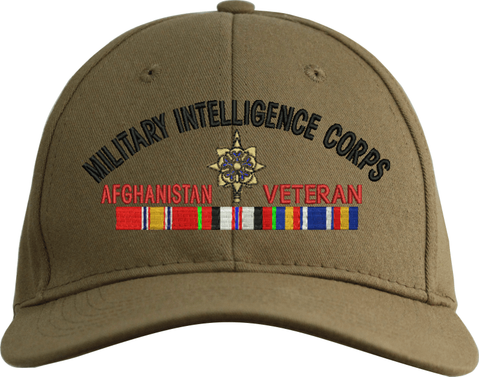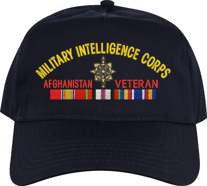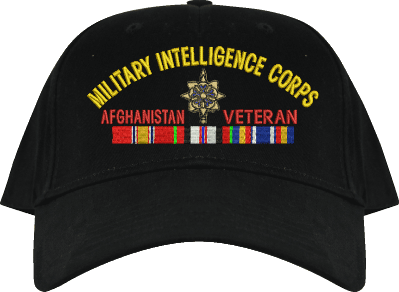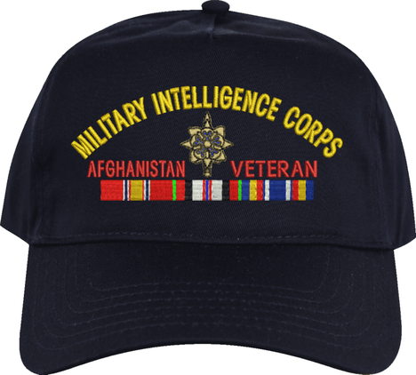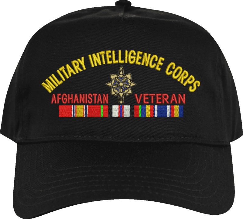 MilitaryBest is proud to offer this U.S. Army Military Intelligence Corps Afghanistan Veteran Embroidered Cap. This cap is available in a 5 panel high profile or 6 panel low profile styling. All our caps are made from top quality materials. This cap would make a wonderful addition to your collection or a great gift! All custom embroidery is done at our facility in Scottsboro, AL. *Caps ordered with embroidered back text requires an additional 1 to 2 days of production time. All personalized caps will be embroidered in ALL CAPITAL LETTERS. Caps personalized with back text are not returnable unless there is a material defect in the cap.A percentage of the sale of each MilitaryBest item is forwarded to the licensing departments of each respective branch of service in support of the MWR (Morale, Welfare, & Recreation) program. These payments are made by either ALL4U LLC or the wholesaler from where the item originated. Our team thanks you for your service and your support of these programs.