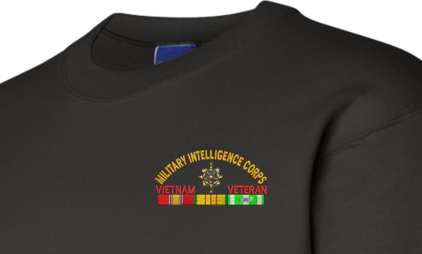 MilitaryBest has expanded its line of apparel with this custom embroidered U.S. Army Military Intelligence Corps Vietnam Veteran Sweatshirt. This Sweatshirt will make an excellent addition to your wardrobe, or a great gift. Your satisfaction is Guaranteed! These quality sweatshirts are proudly embroidered at our facilities in Scottsboro, AL. Support the Army MWR program by purchasing only from Licensed Vendors. To all of our Vietnam Veterans, Welcome Home!