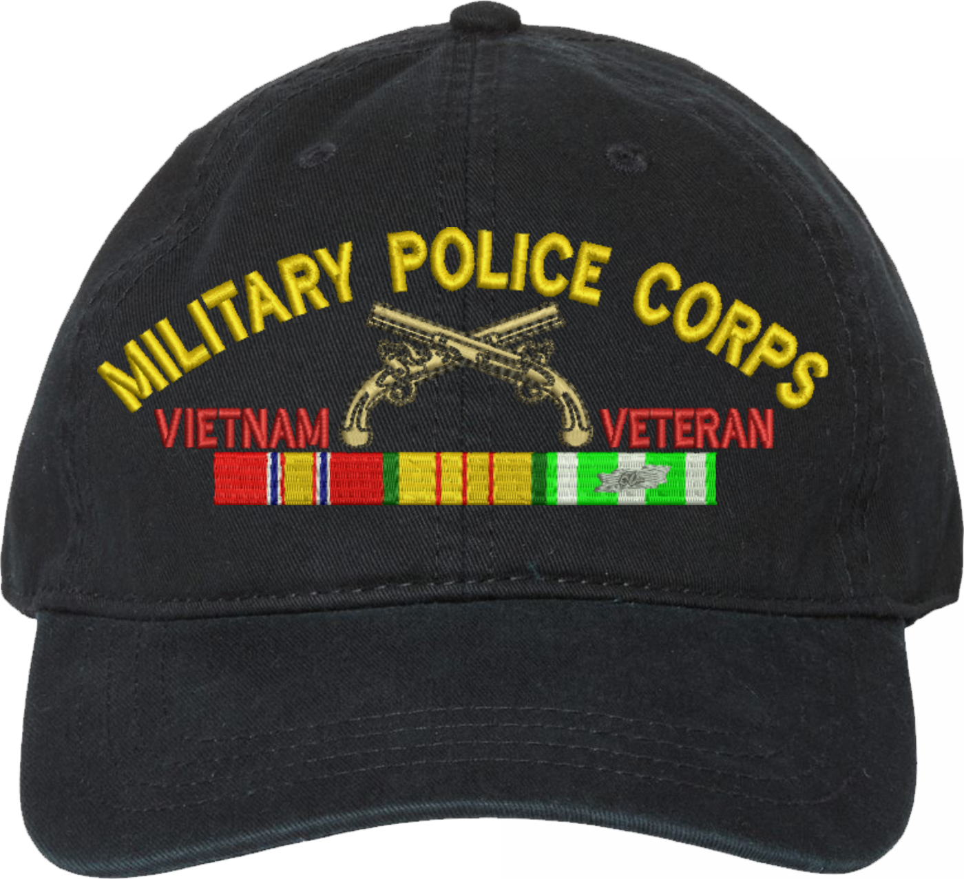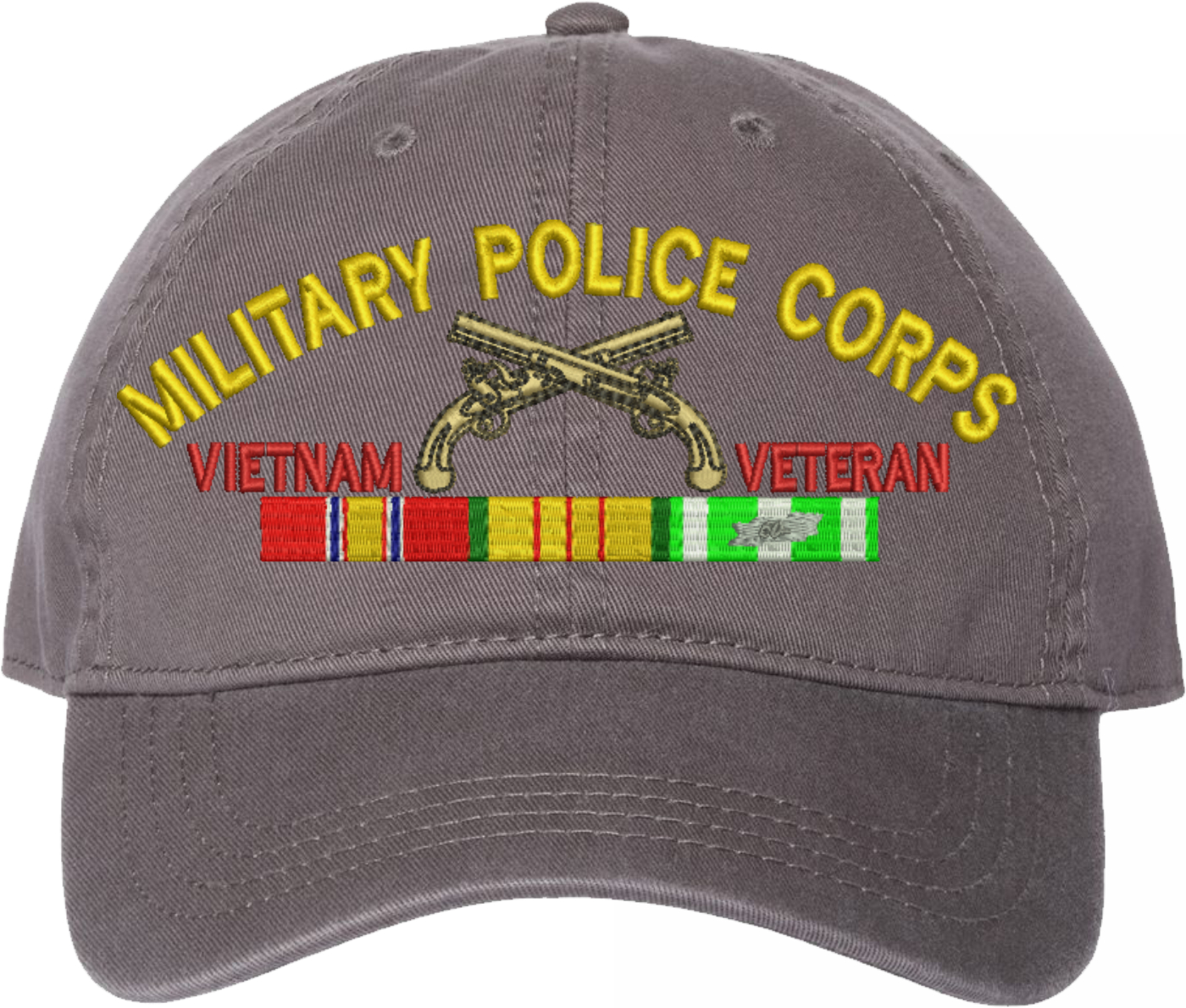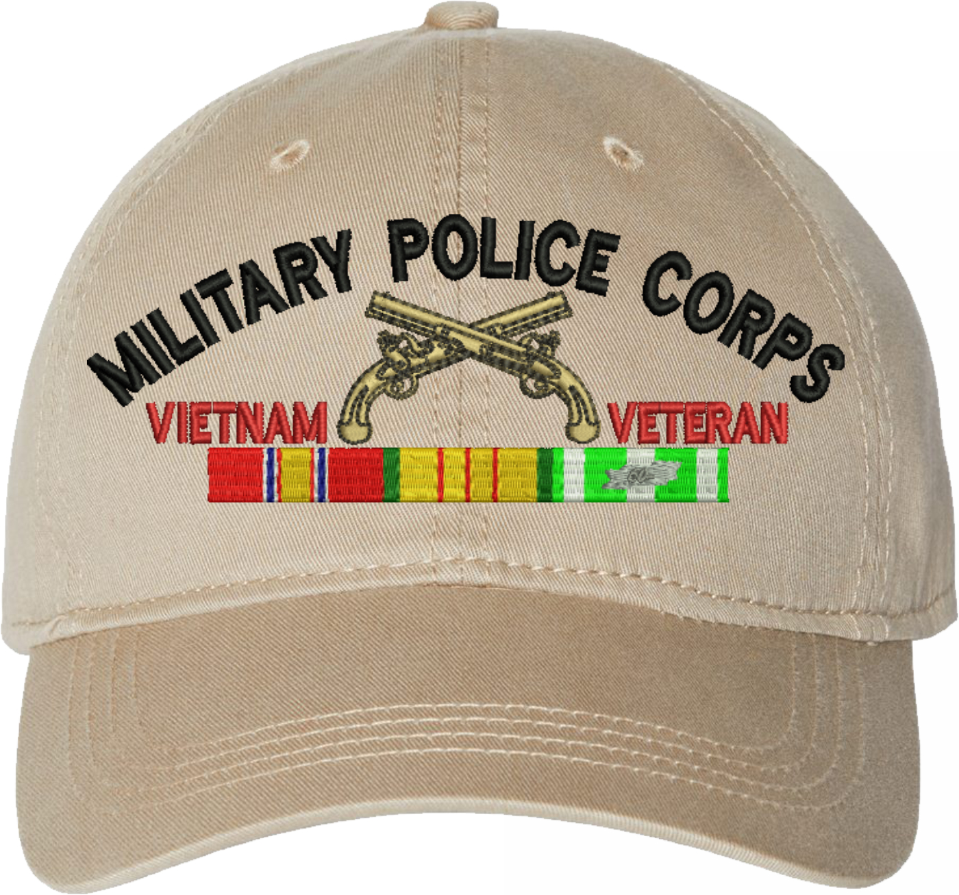 Show your Army pride with this U.S. Army Military Police Corps Vietnam Veteran Unstructured Dad Cap from MilitaryBest. Crafted from 100% washed chino twill cotton, this six-panel, low-profile cap offers a relaxed and comfortable fit. Featuring high-quality embroidery done in our Scottsboro, Alabama facility, this cap is designed with a pre-curved visor and an adjustable tri-glide buckle closure for a perfect fit. Whether for everyday wear or as a meaningful gift, this cap is a great way to honor your own or a loved one's service.For caps ordered with custom embroidered personalized text please allow an additional 3 to 5 days production time. All custom back text will be embroidered in ALL CAPITAL LETTERS. Caps with back text or eggs are non-returnable unless there is a material defect in the cap.