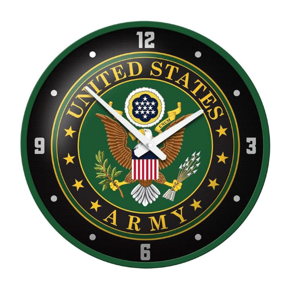 Our simple and modern United States Army wall clock will add color and appeal to any room you choose to hang it in. It features an injection molded frame with a high-resolution, digitally printed, face that prominently displays their team logo. It also features a quartz clock movement to add an extra element of functionality. This is the perfect clock for any room of the home or office. This is an officially licensed product of the US Army and made in the USA.FEATURES