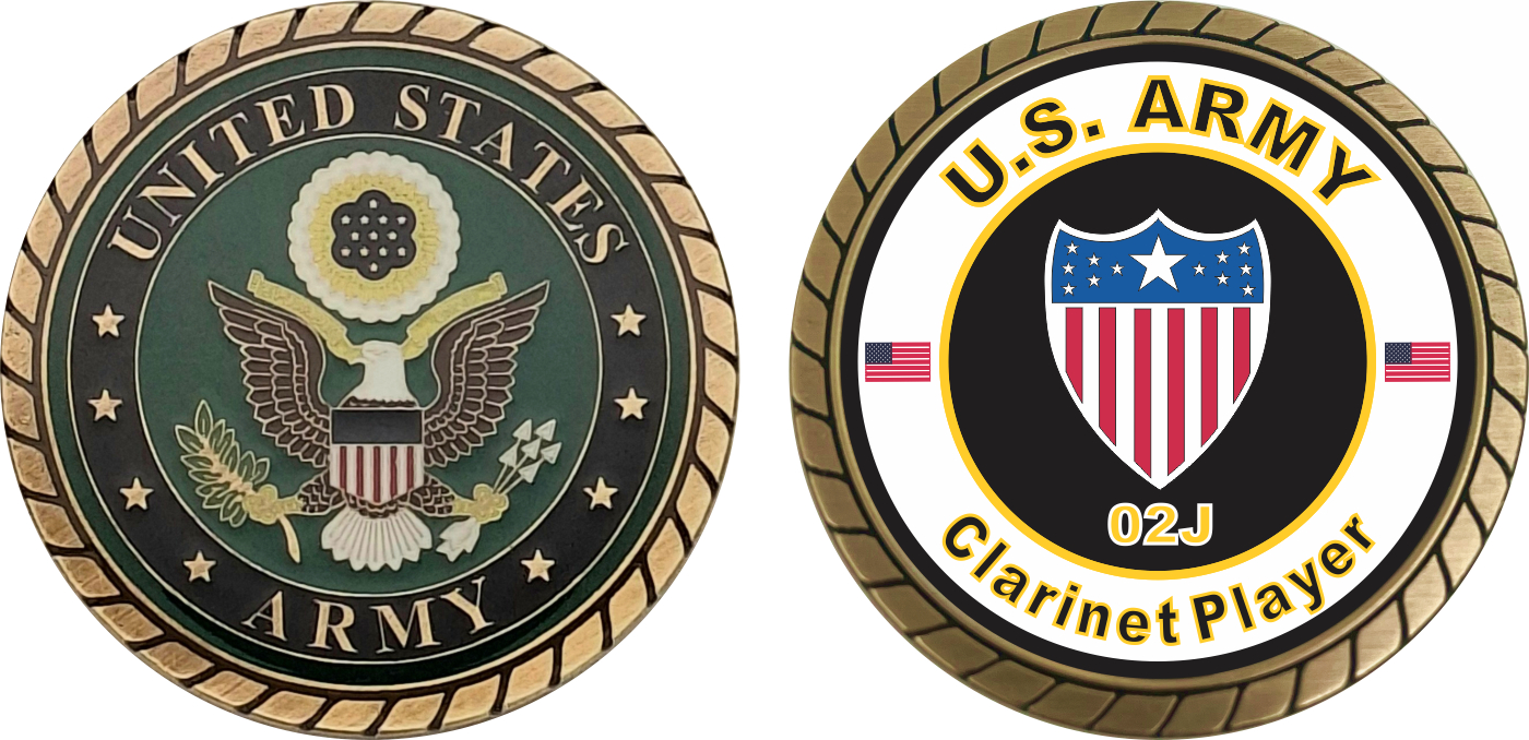 This 1 3/4” U.S. Army MOS 02J Clarinet Player Challenge Coin is proudly offered by Militarybest. This Officially Licensed Army MOS coin has beautiful enamel finish on one side and an organized crisp clean 02J Clarinet Player designation on the opposite side.
