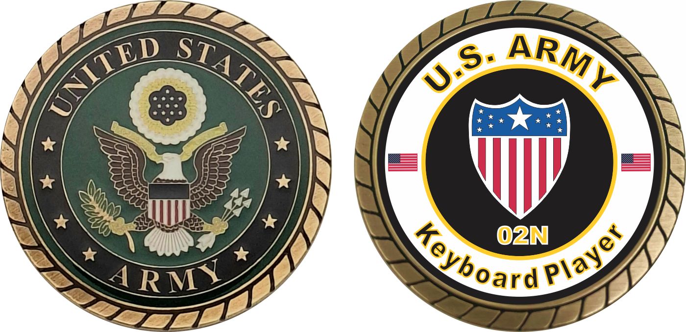This 1 3/4” U.S. Army MOS 02N Keyboard Player Challenge Coin is proudly offered by Militarybest. This Officially Licensed Army MOS coin has beautiful enamel finish on one side and an organized crisp clean 02N Keyboard Player designation on the opposite side.