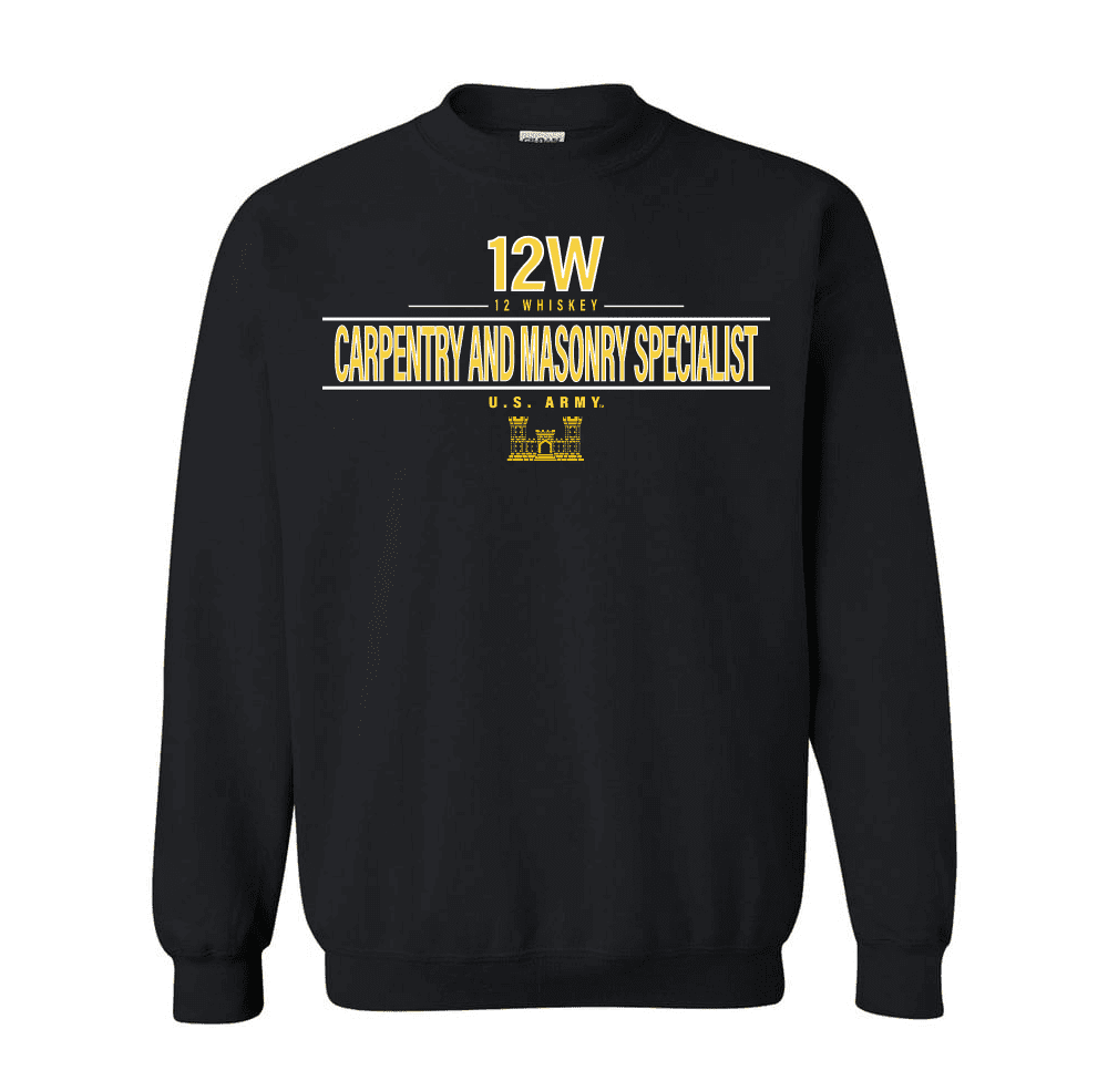 Please enjoy this U.S. Army MOS 12w Carpentry And Masonry Specialist Sweatshirt. The design on this shirt is printed directly to the shirt selected, and is Proudly Printed in the USA. It is 100% pre shrunk shirt and is available in S, M, L, XL, 2X and 3X sizes. As with all of our products this shirt carries a 100% customer satisfaction guarantee.FedEx is not a valid shipping option for this item, if FedEx is selected at checkout UPS will be used instead.