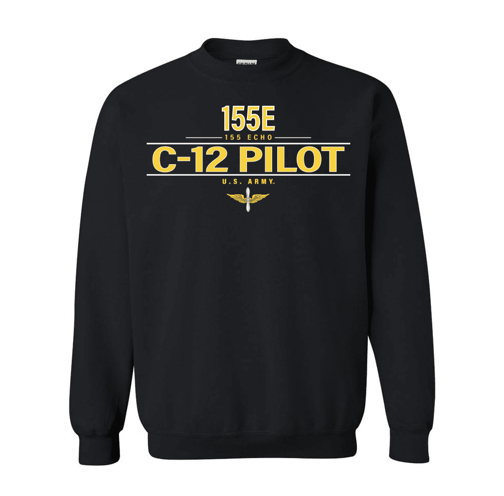 Please enjoy this U.S. Army MOS 155e C-12 Pilot Sweatshirt. The design on this shirt is printed directly to the shirt selected, and is Proudly Printed in the USA. It is 100% pre shrunk shirt and is available in S, M, L, XL, 2X and 3X sizes. As with all of our products this shirt carries a 100% customer satisfaction guarantee.FedEx is not a valid shipping option for this item, if FedEx is selected at checkout UPS will be used instead.