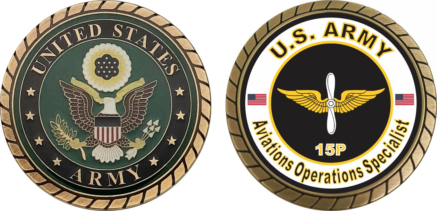 This 1 3/4” U.S. Army MOS 15P Aviations Operations Specialist Challenge Coin is proudly offered by Militarybest. This Officially Licensed Army MOS coin has beautiful enamel finish on one side and an organized crisp clean 15P Aviations Operations Specialist designation on the opposite side.