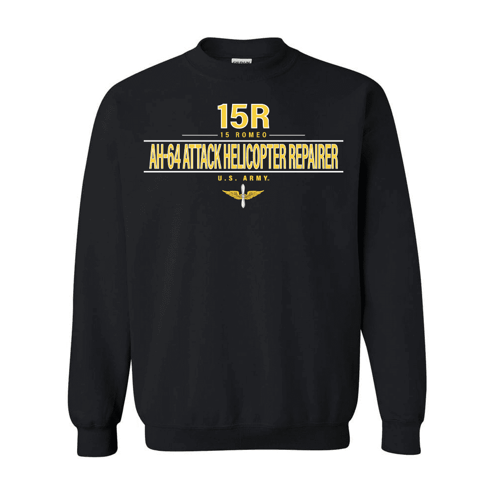 Please enjoy this U.S. Army MOS 15r AH-64 Attack Helicopter Repairer Sweatshirt. The design on this shirt is printed directly to the shirt selected, and is Proudly Printed in the USA. It is 100% pre shrunk shirt and is available in S, M, L, XL, 2X and 3X sizes. As with all of our products this shirt carries a 100% customer satisfaction guarantee.FedEx is not a valid shipping option for this item, if FedEx is selected at checkout UPS will be used instead.