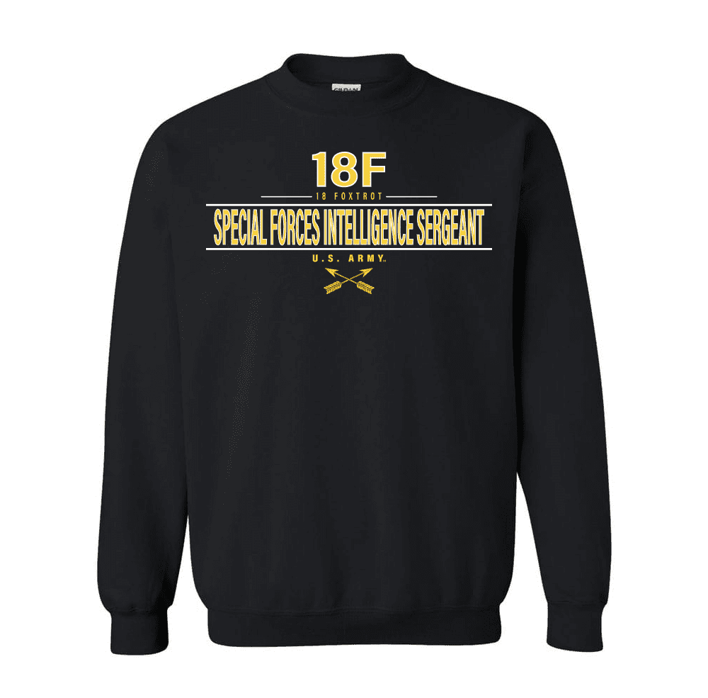 Please enjoy this U.S. Army MOS 18F Special Forces Intelligence Sergeant Sweatshirt. The design on this shirt is printed directly to the shirt selected, and is Proudly Printed in the USA. It is 100% pre shrunk shirt and is available in S, M, L, XL, 2X and 3X sizes. As with all of our products this shirt carries a 100% customer satisfaction guarantee.FedEx is not a valid shipping option for this item, if FedEx is selected at checkout UPS will be used instead.