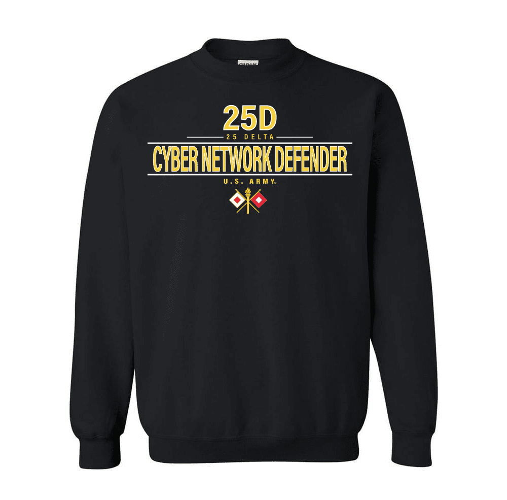 Please enjoy this U.S. Army MOS 25d Cyber Network Defender Sweatshirt. The design on this shirt is printed directly to the shirt selected, and is Proudly Printed in the USA. It is 100% pre shrunk shirt and is available in S, M, L, XL, 2X and 3X sizes. As with all of our products this shirt carries a 100% customer satisfaction guarantee.FedEx is not a valid shipping option for this item, if FedEx is selected at checkout UPS will be used instead.