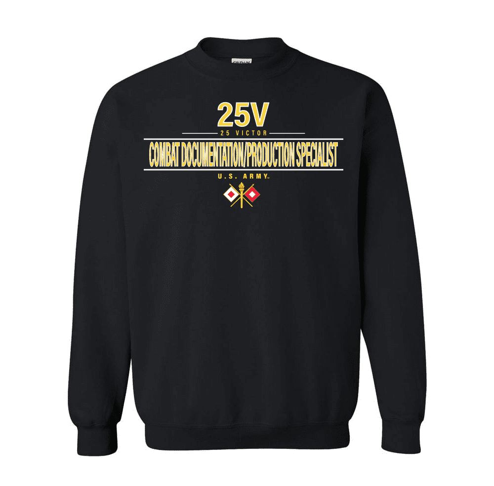 Please enjoy this U.S. Army MOS 25v Combat Documentation Production Specialist Sweatshirt. The design on this shirt is printed directly to the shirt selected, and is Proudly Printed in the USA. It is 100% pre shrunk shirt and is available in S, M, L, XL, 2X and 3X sizes. As with all of our products this shirt carries a 100% customer satisfaction guarantee.FedEx is not a valid shipping option for this item, if FedEx is selected at checkout UPS will be used instead.