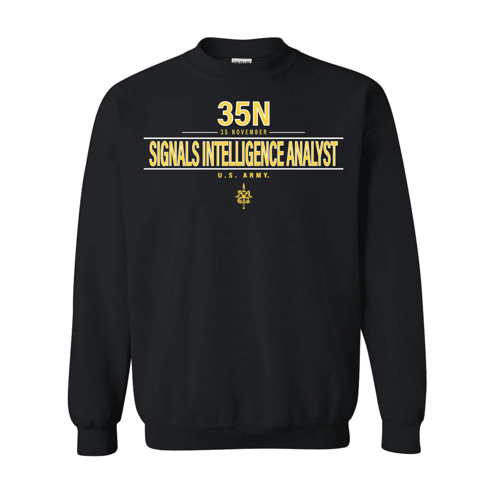 Please enjoy this U.S. Army MOS 35n Signals Intelligence Analyst Sweatshirt. The design on this shirt is printed directly to the shirt selected, and is Proudly Printed in the USA. It is 100% pre shrunk shirt and is available in S, M, L, XL, 2X and 3X sizes. As with all of our products this shirt carries a 100% customer satisfaction guarantee.FedEx is not a valid shipping option for this item, if FedEx is selected at checkout UPS will be used instead.