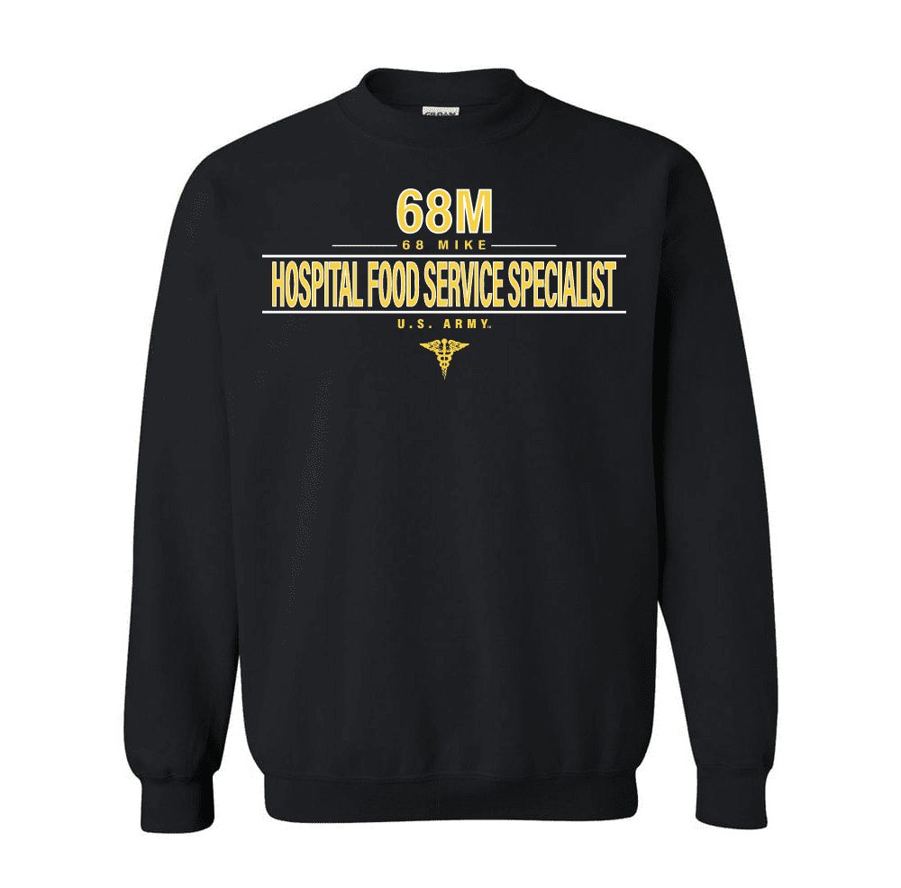 Please enjoy this U.S. Army MOS 68M Hospital Food Service Specialist Sweatshirt. The design on this shirt is printed directly to the shirt selected, and is Proudly Printed in the USA. It is 100% pre shrunk shirt and is available in S, M, L, XL, 2X and 3X sizes. As with all of our products this shirt carries a 100% customer satisfaction guarantee.FedEx is not a valid shipping option for this item, if FedEx is selected at checkout UPS will be used instead.