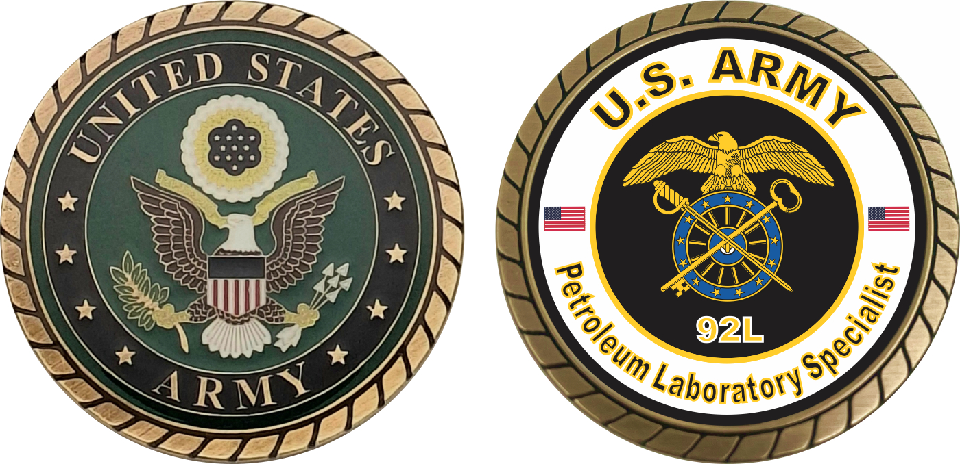 This 1 3/4” U.S. Army MOS 92L Petroleum Laboratory Specialist Challenge Coin is proudly offered by Militarybest. This Officially Licensed Army MOS coin has beautiful enamel finish on one side and an organized crisp clean 92L Petroleum Laboratory Specialist designation on the opposite side.