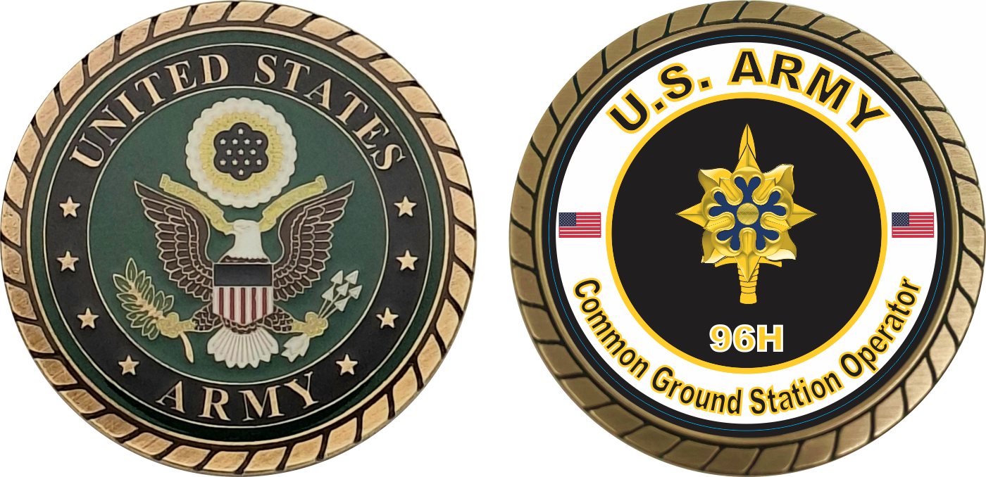 This 1 3/4” U.S. Army MOS 96H Common Ground Station Operator Challenge Coin is proudly offered by Militarybest. This Officially Licensed Army MOS coin has beautiful enamel finish on one side and an organized crisp clean 96H Common Ground Station Operator designation on the opposite side.