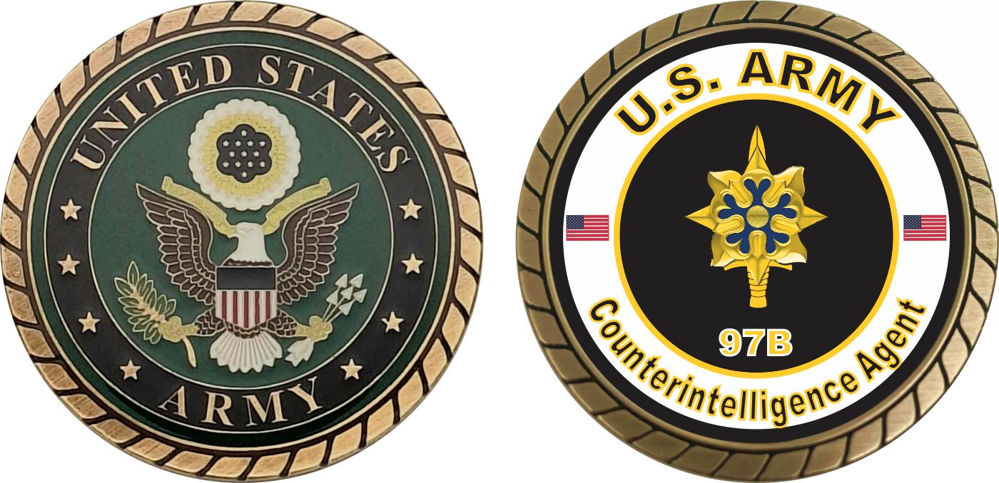This 1 3/4” U.S. Army MOS 97B Counterintelligence Agent Challenge Coin is proudly offered by Militarybest. This Officially Licensed Army MOS coin has beautiful enamel finish on one side and an organized crisp clean 97B Counterintelligence Agent designation on the opposite side.