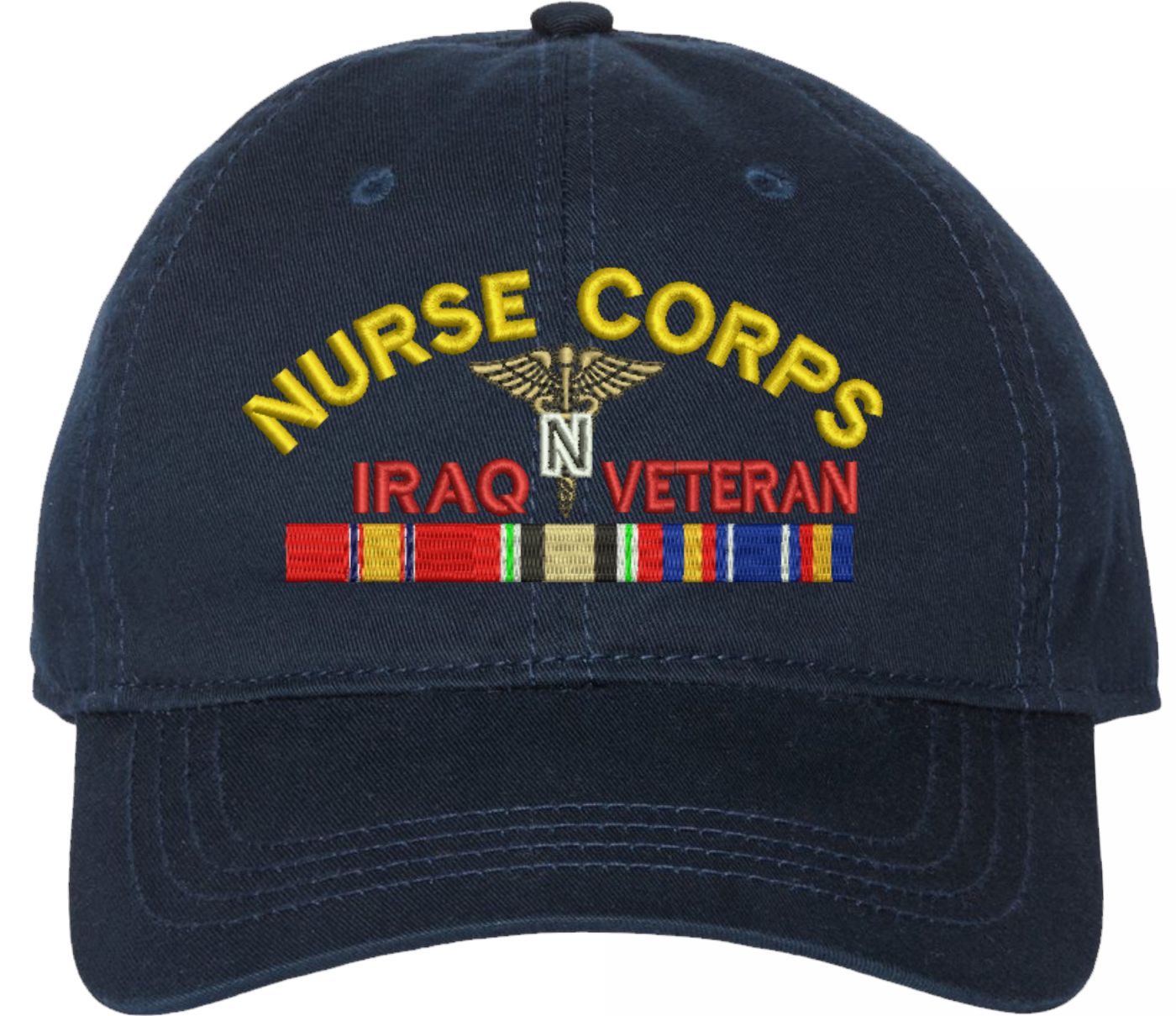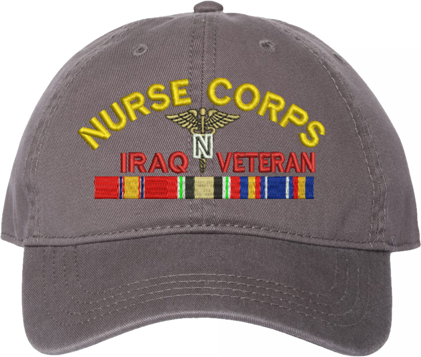 Show your Army pride with this U.S. Army Nurse Corps Iraq Veteran Unstructured Dad Cap from MilitaryBest. Crafted from 100% washed chino twill cotton, this six-panel, low-profile cap offers a relaxed and comfortable fit. Featuring high-quality embroidery done in our Scottsboro, Alabama facility, this cap is designed with a pre-curved visor and an adjustable tri-glide buckle closure for a perfect fit. Whether for everyday wear or as a meaningful gift, this cap is a great way to honor your own or a loved one's service.For caps ordered with custom embroidered personalized text please allow an additional 3 to 5 days production time. All custom back text will be embroidered in ALL CAPITAL LETTERS. Caps with back text or eggs are non-returnable unless there is a material defect in the cap.