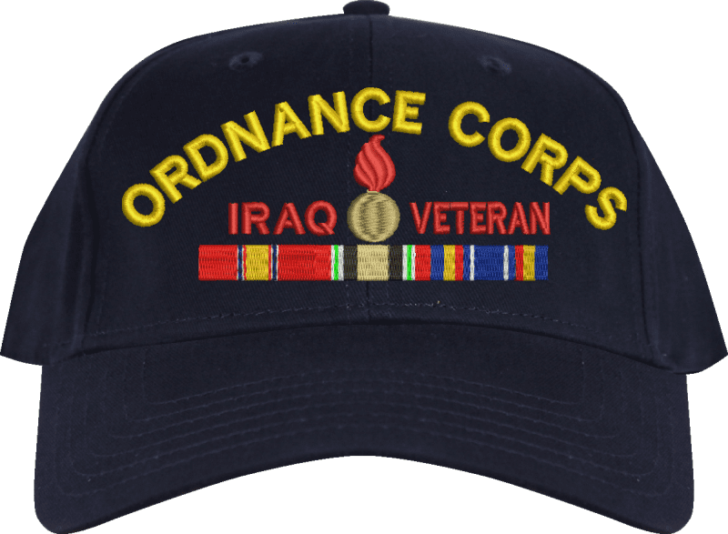 MilitaryBest is proud to offer this U.S. Army Ordnance Corps Iraq Veteran Embroidered Cap. This cap is available in a 5 panel high profile or 6 panel low profile styling. All our caps are made from top quality materials. This cap would make a wonderful addition to your collection or a great gift! All custom embroidery is done at our facility in Scottsboro, AL. *Caps ordered with embroidered back text requires an additional 1 to 2 days of production time. All personalized caps will be embroidered in ALL CAPITAL LETTERS. Caps personalized with back text are not returnable unless there is a material defect in the cap.A percentage of the sale of each MilitaryBest item is forwarded to the licensing departments of each respective branch of service in support of the MWR (Morale, Welfare, & Recreation) program. These payments are made by either ALL4U LLC or the wholesaler from where the item originated. Our team thanks you for your service and your support of these programs.