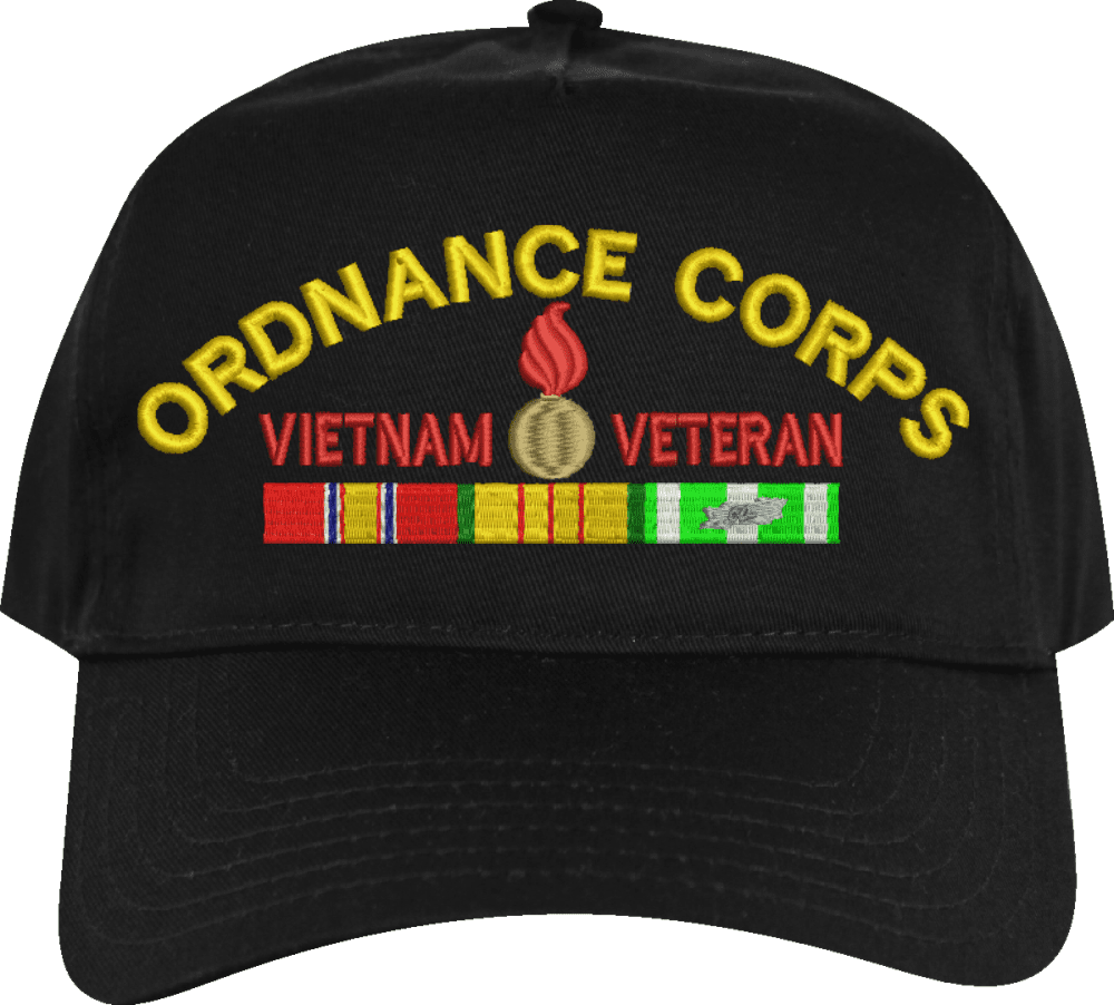 MilitaryBest is proud to offer this U.S. Army Ordnance Corps Vietnam Veteran Embroidered Cap. This cap is available in a 5 panel high profile or 6 panel low profile styling. All our caps are made from top quality materials. This cap would make a wonderful addition to your collection or a great gift! All custom embroidery is done at our facility in Scottsboro, AL. *Caps ordered with embroidered back text requires an additional 1 to 2 days of production time. All personalized caps will be embroidered in ALL CAPITAL LETTERS. Caps personalized with back text are not returnable unless there is a material defect in the cap.A percentage of the sale of each MilitaryBest item is forwarded to the licensing departments of each respective branch of service in support of the MWR (Morale, Welfare, & Recreation) program. These payments are made by either ALL4U LLC or the wholesaler from where the item originated. Our team thanks you for your service and your support of these programs.