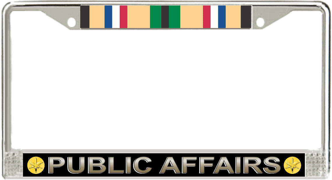 This U.S. Army Public Affairs Gulf War Veteran License Plate Frame is made from the highest quality finished metal alloy. Each one is designed to provide years of use. Each is designed and produced in our facility in Scottsboro, Alabama. Our Military License Plate Frames are standard designs and have been a staple in our product line for 15 years. Please check with your state and local regulations regarding suitability for displaying this License Plate Frame on you vehicle since these regulations may have changed over time.A percentage of the sale of each MilitaryBest item is forwarded to the licensing departments of each respective branch of service in support of the MWR (Morale, Welfare, & Recreation) program. These payments are made by either ALL4U LLC or the wholesaler from where the item originated. Our team thanks you for your service and your support of these programs.