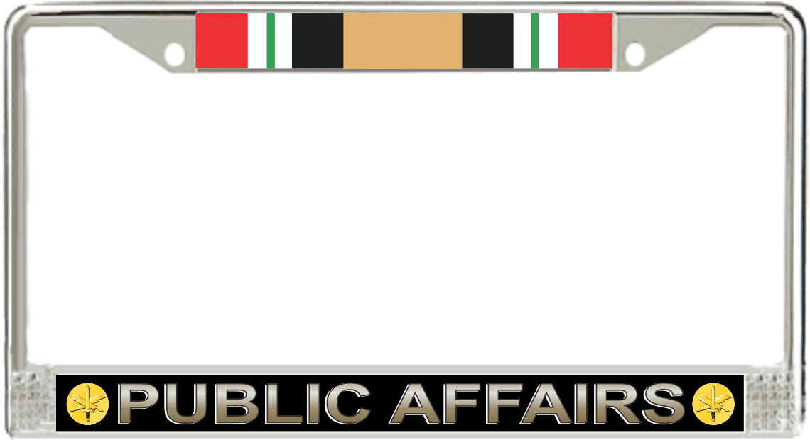 This U.S. Army Public Affairs Iraq Veteran License Plate Frame is made from the highest quality finished metal alloy. Each one is designed to provide years of use. Each is designed and produced in our facility in Scottsboro, Alabama. Our Military License Plate Frames are standard designs and have been a staple in our product line for 15 years. Please check with your state and local regulations regarding suitability for displaying this License Plate Frame on you vehicle since these regulations may have changed over time.A percentage of the sale of each MilitaryBest item is forwarded to the licensing departments of each respective branch of service in support of the MWR (Morale, Welfare, & Recreation) program. These payments are made by either ALL4U LLC or the wholesaler from where the item originated. Our team thanks you for your service and your support of these programs.
