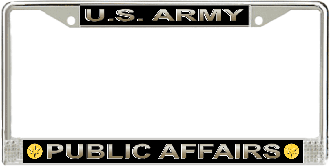 This U.S. Army Public Affairs License Plate Frame is made from the highest quality finished metal alloy. Each one is designed to provide years of use. Each is designed and produced in our facility in Scottsboro, Alabama. Our Military License Plate Frames are standard designs and have been a staple in our product line for 15 years. Please check with your state and local regulations regarding suitability for displaying this License Plate Frame on you vehicle since these regulations may have changed over time.A percentage of the sale of each MilitaryBest item is forwarded to the licensing departments of each respective branch of service in support of the MWR (Morale, Welfare, & Recreation) program. These payments are made by either ALL4U LLC or the wholesaler from where the item originated. Our team thanks you for your service and your support of these programs.