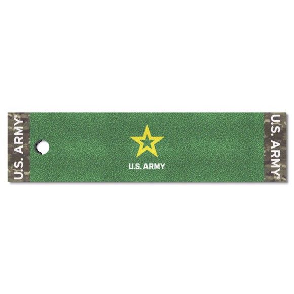 This U.S. Army Putting Green Runner Mat provides a realistic putting surface and is an 11 on the Stimpmeter. It features a 100% nylon chromojet-printed surface with a durable vinyl backing. This mat measures 18”x72” and comes with a target and a flag. It’s quality is guaranteed.Fan Mats products are made to order and returns are not accepted unless there is a material defect in the product. These items are made to order and are in production 7-10 days.