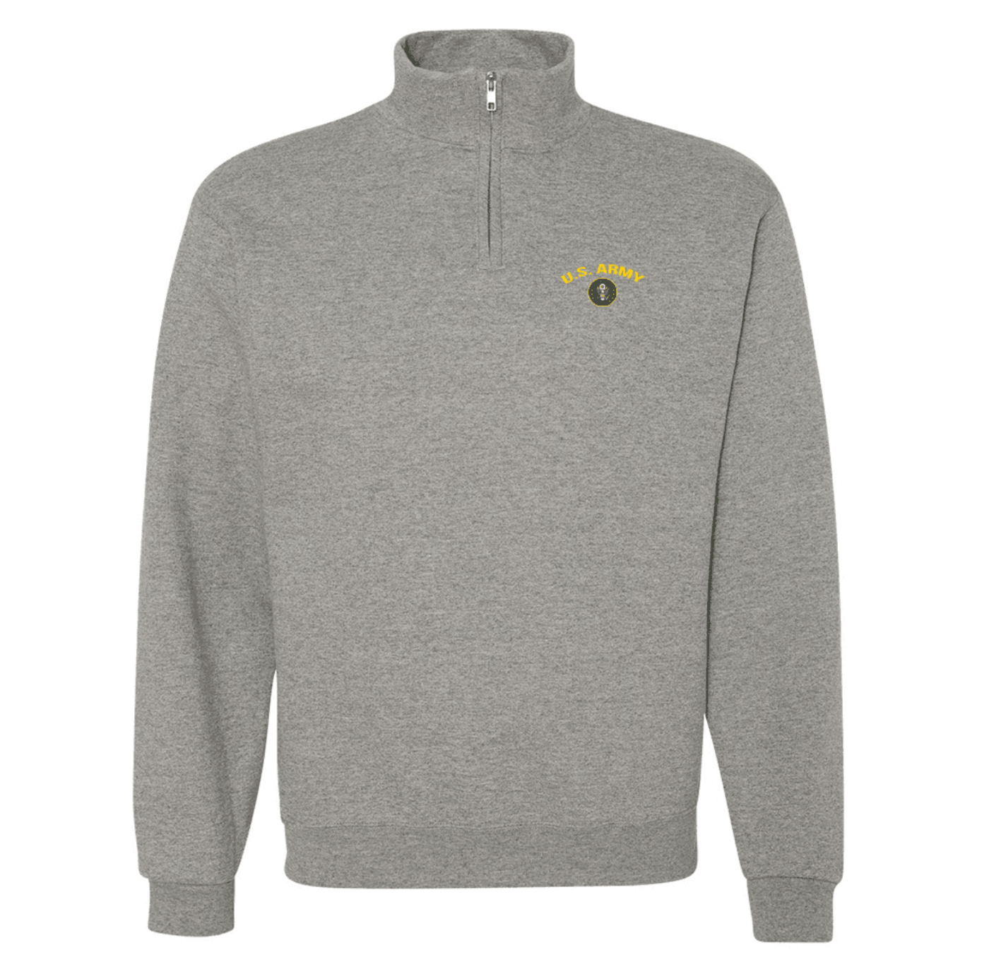 This U.S. Army Quarter-Zip makes an excellent addition to your wardrobe or a fine gift and features High stitch density Nublend® pill-resistant fleece, Pre-shrunk 50/50 cotton/polyester and a Concealed 7"" zipper. The graphic is state of the art DTF film.It is available in 3 colors - Black, Navy Blue and Oxford Gray.