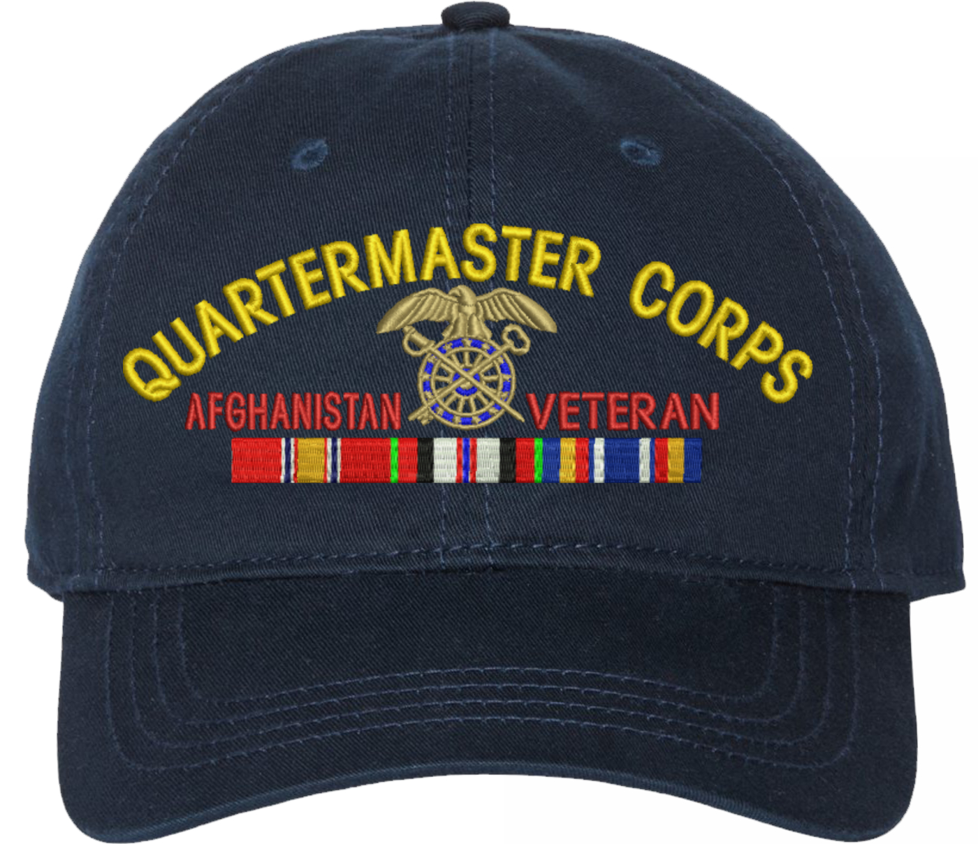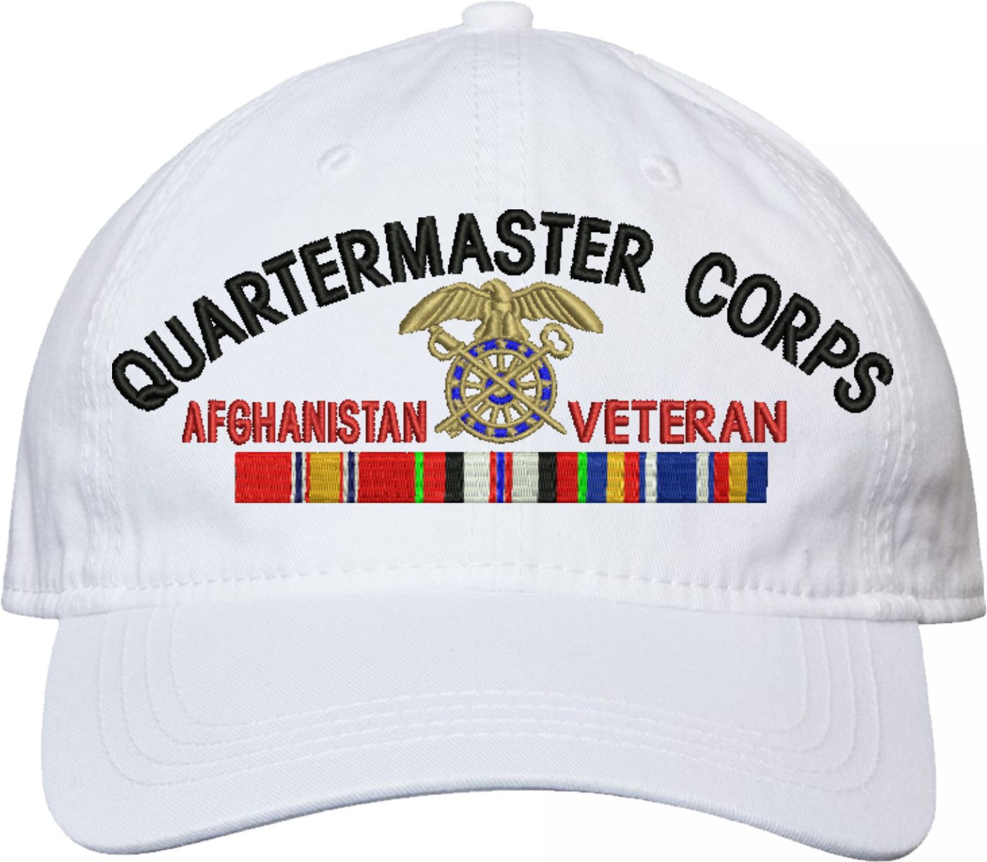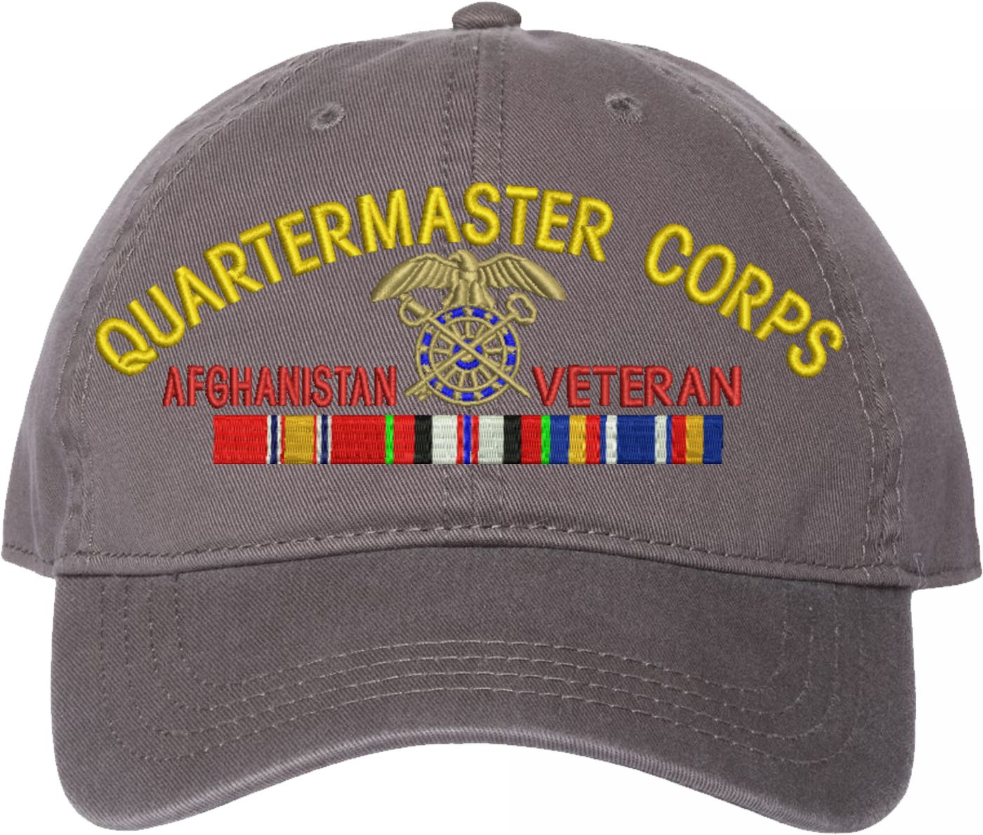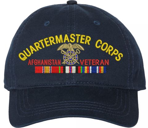 Show your Army pride with this U.S. Army Quartermaster Corps Afghanistan Veteran Unstructured Dad Cap from MilitaryBest. Crafted from 100% washed chino twill cotton, this six-panel, low-profile cap offers a relaxed and comfortable fit. Featuring high-quality embroidery done in our Scottsboro, Alabama facility, this cap is designed with a pre-curved visor and an adjustable tri-glide buckle closure for a perfect fit. Whether for everyday wear or as a meaningful gift, this cap is a great way to honor your own or a loved one's service.For caps ordered with custom embroidered personalized text please allow an additional 3 to 5 days production time. All custom back text will be embroidered in ALL CAPITAL LETTERS. Caps with back text or eggs are non-returnable unless there is a material defect in the cap.