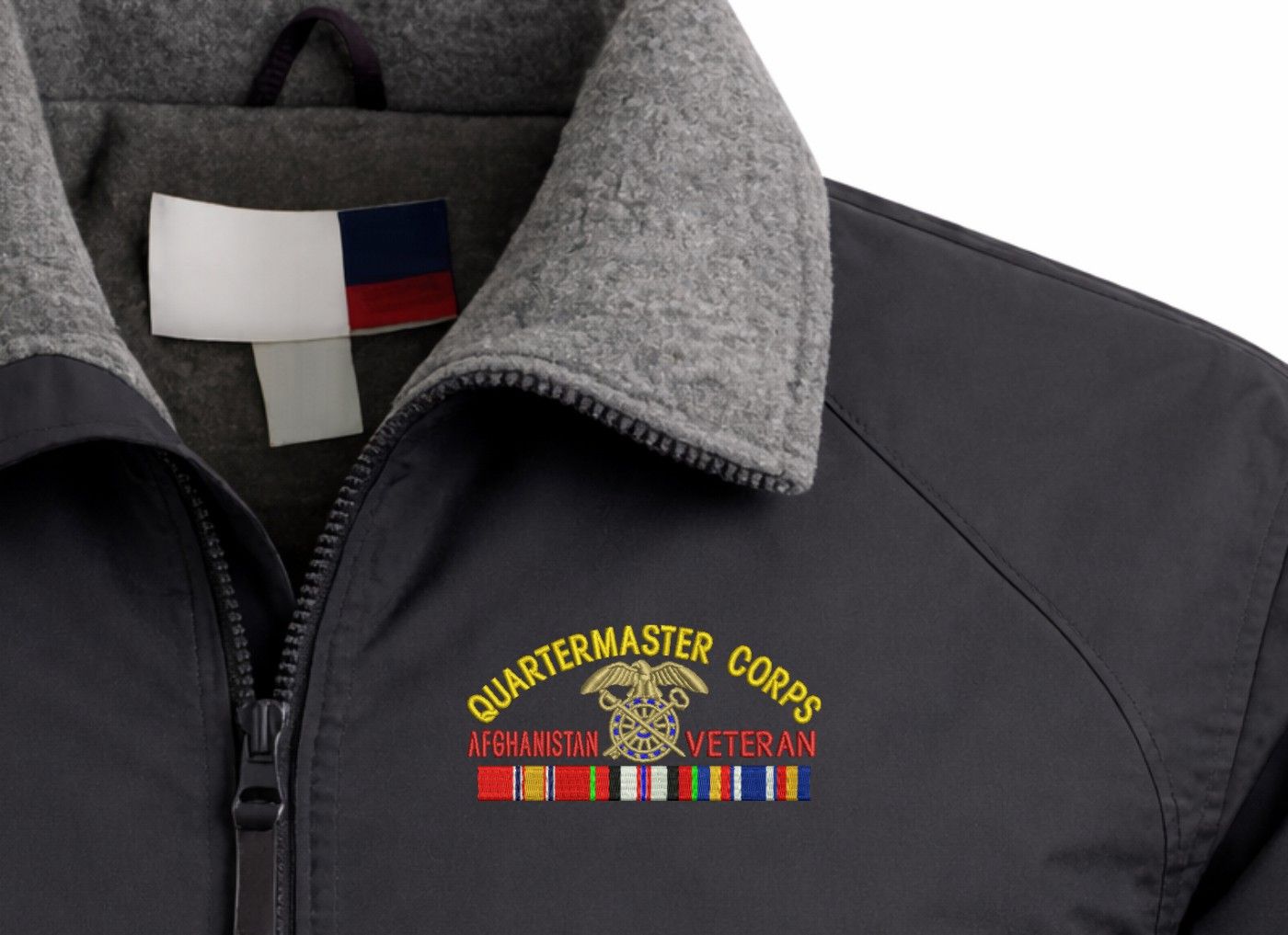 Note: Some of the Color Options pictured may not be available. Available Color Options are listed on the drop down menu above.MilitaryBest is proud to offer this quality U.S. Army Quartermaster Corps Afghanistan Veteran 3-Season Jacket. This 3-Season Jacket is made from a 3-Layer system consisting of a nylon shell, an insulator layer, Nylon-lined sleeves, and an inside layer of fleece for comfort. The jacket features include a sturdy black enamel front-zipper, raglan sleeves, outsize zip pockets, an inside zip security pocket, YKK zippers, and a banded-bottom. This Jacket will make an excellent addition to your wardrobe, or a quality gift. Your satisfaction is guaranteed! Depending on your location this jacket can be worn in fall, winter, and spring. These quality Military Jackets are proudly embroidered at our facilities in Scottsboro, AL. Support the Army MWR program by purchasing only from Licensed Vendors.