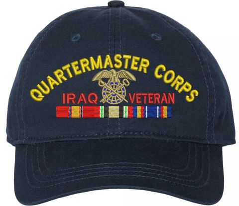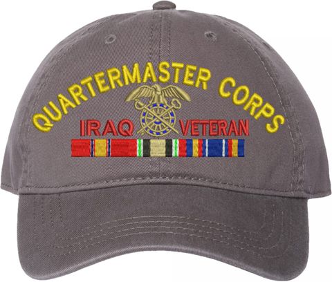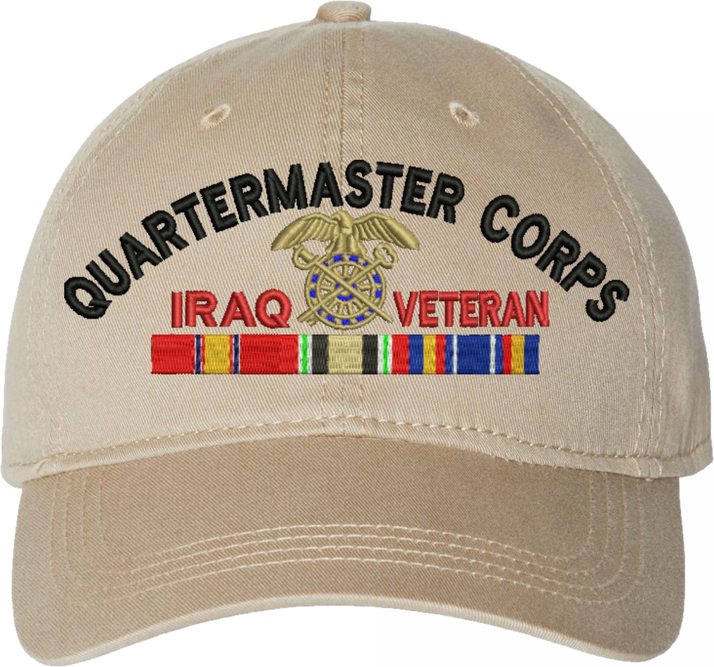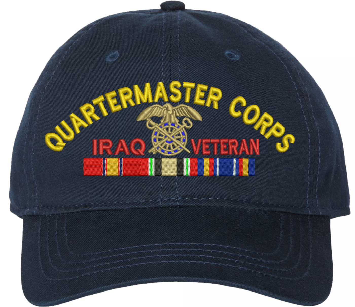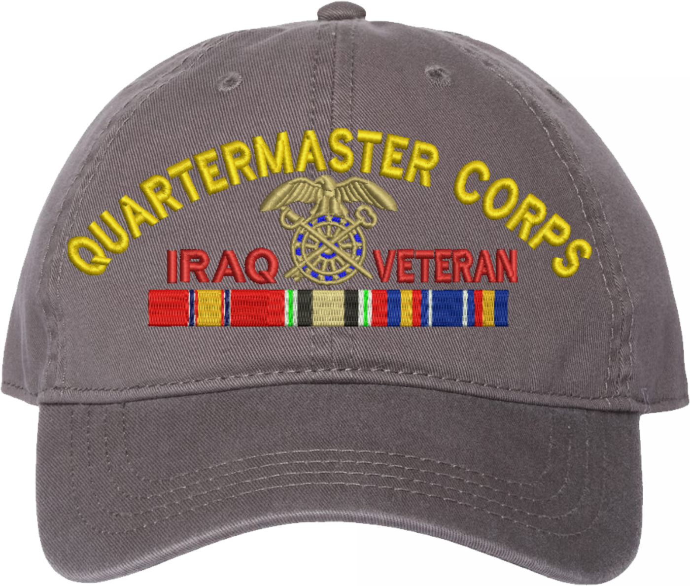 Show your Army pride with this U.S. Army Quartermaster Corps Iraq Veteran Unstructured Dad Cap from MilitaryBest. Crafted from 100% washed chino twill cotton, this six-panel, low-profile cap offers a relaxed and comfortable fit. Featuring high-quality embroidery done in our Scottsboro, Alabama facility, this cap is designed with a pre-curved visor and an adjustable tri-glide buckle closure for a perfect fit. Whether for everyday wear or as a meaningful gift, this cap is a great way to honor your own or a loved one's service.For caps ordered with custom embroidered personalized text please allow an additional 3 to 5 days production time. All custom back text will be embroidered in ALL CAPITAL LETTERS. Caps with back text or eggs are non-returnable unless there is a material defect in the cap.